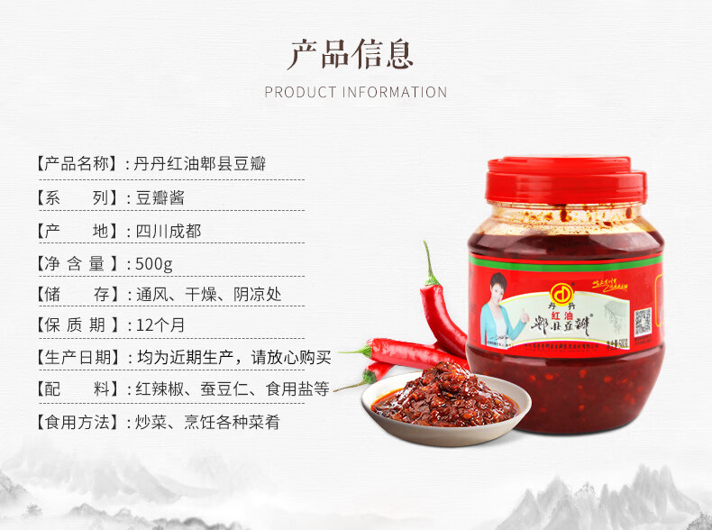 [七彩鲜生]丹丹郫县豆瓣红油(豆瓣)500g/罐【俊发城次日自提】