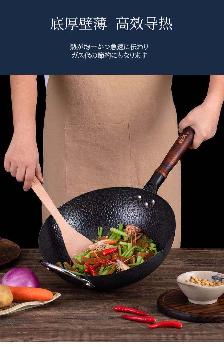 铁技 日本进口单耳高纯铁炒锅30cm HC630S【宝库优选】