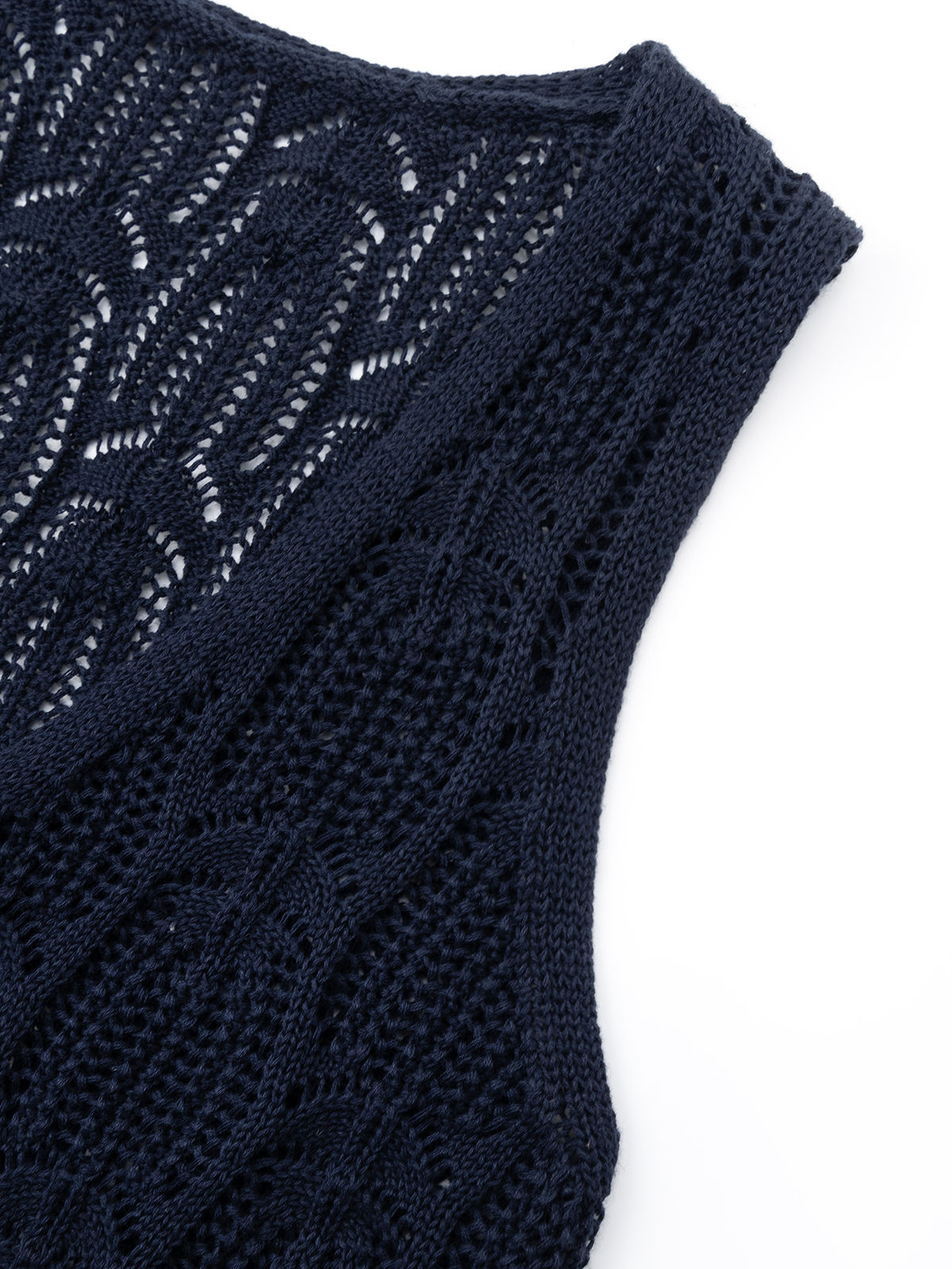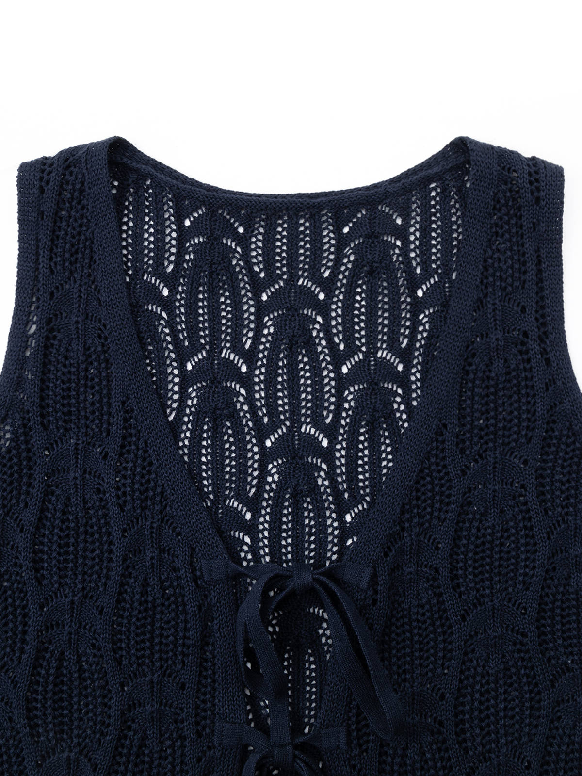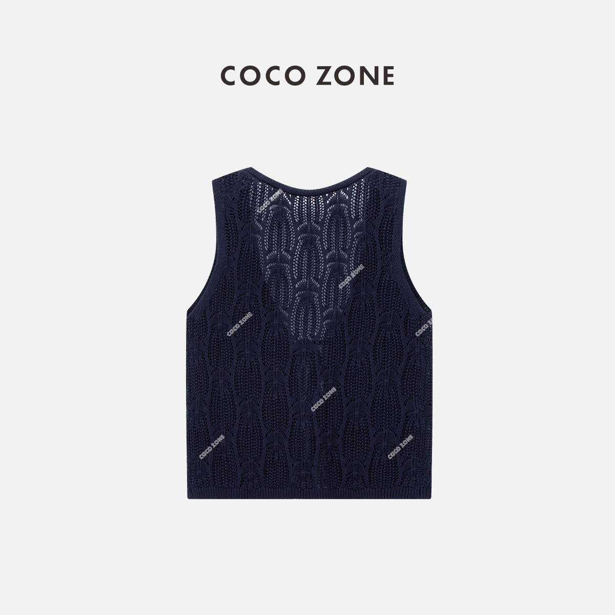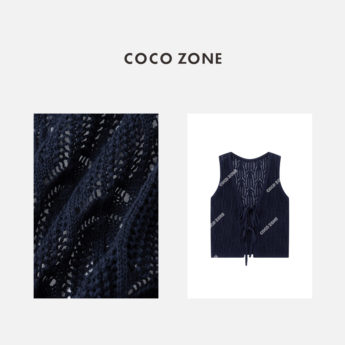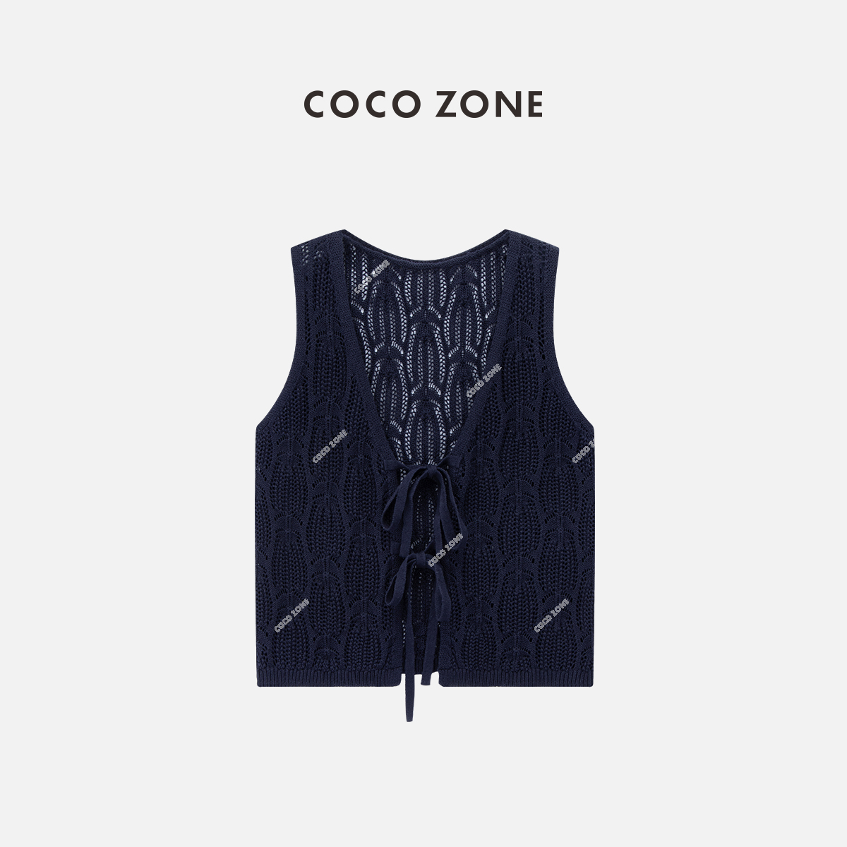 COCO ZONE”漫漫盛夏“复古高级感镂空无袖针织马夹设计感绑带上衣CC1B0980