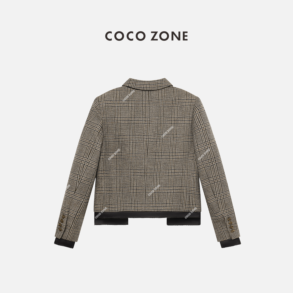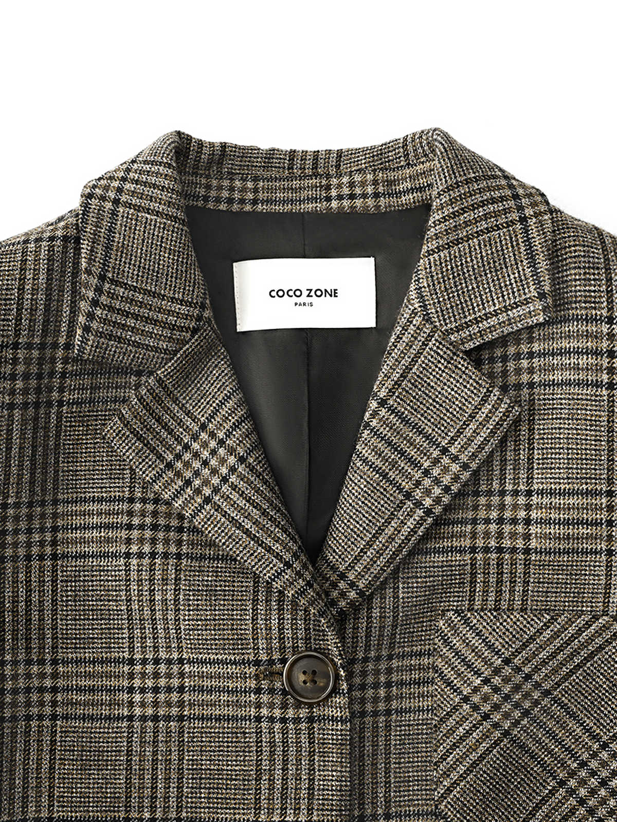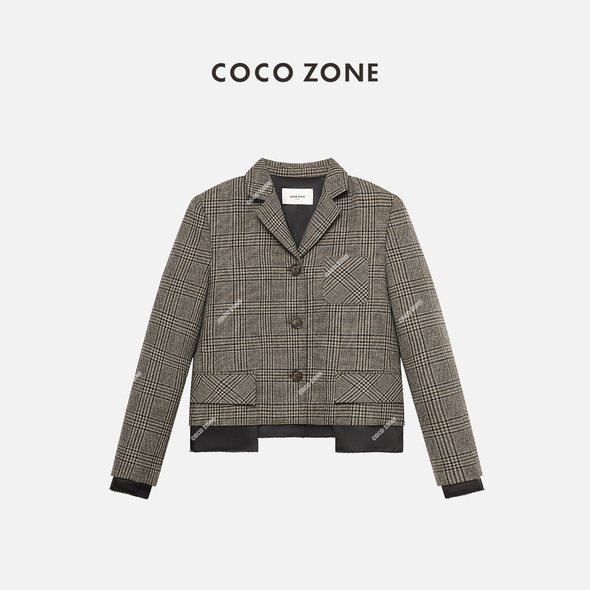 COCO ZONE羊毛格纹翻领西装三粒扣设计感西服24C10230
