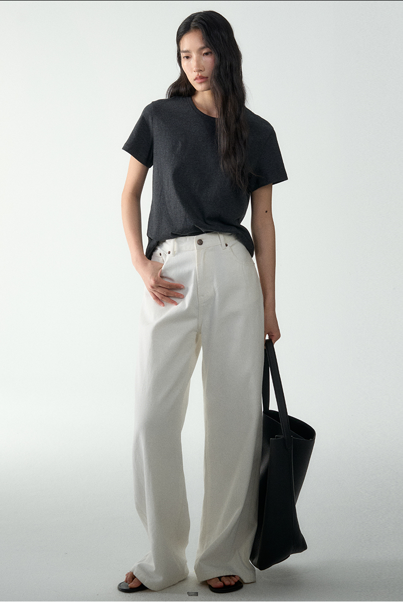COCO ZONE&刘一一100%棉牛仔裤百搭春秋通勤设计师直筒裤23C19408