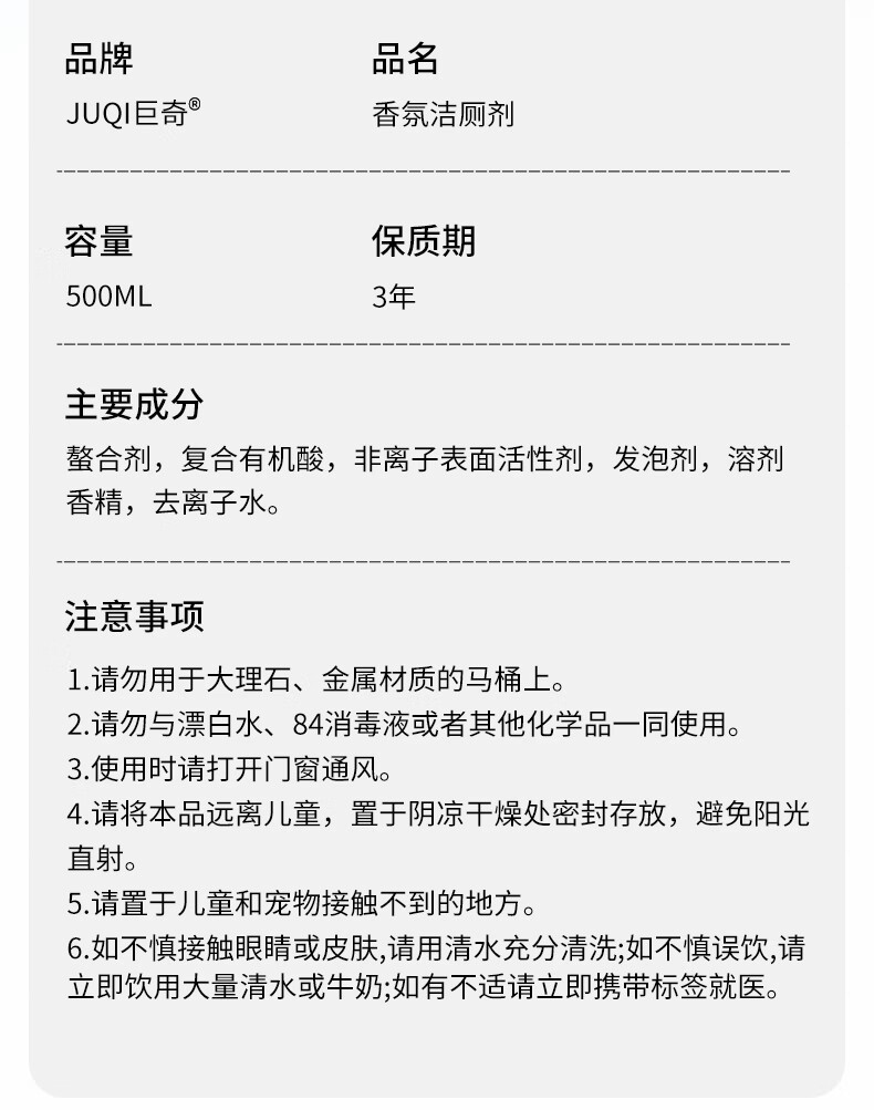 巨奇-马桶香氛清洁剂栀子花500ml