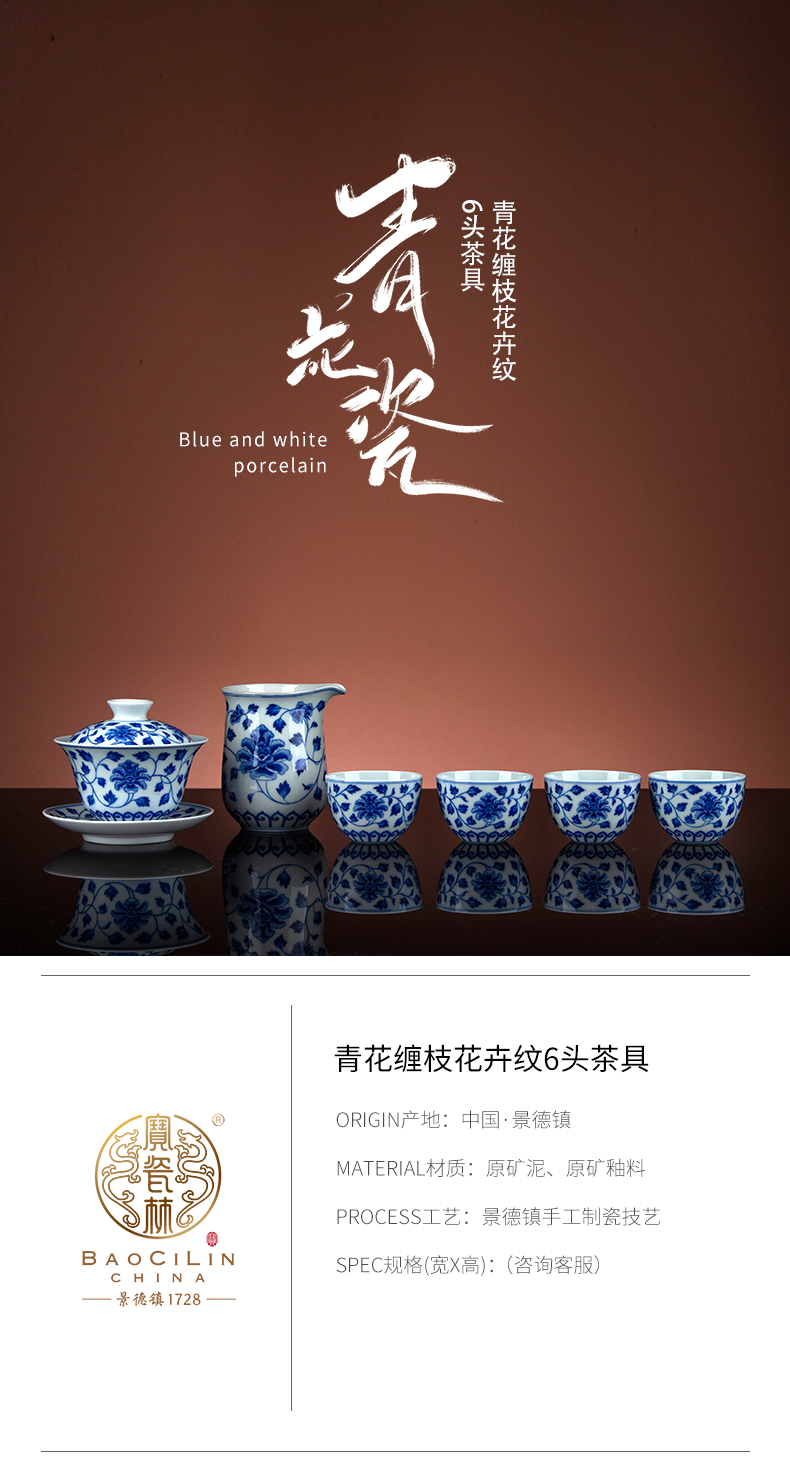 青花缠枝花卉纹6头茶具
