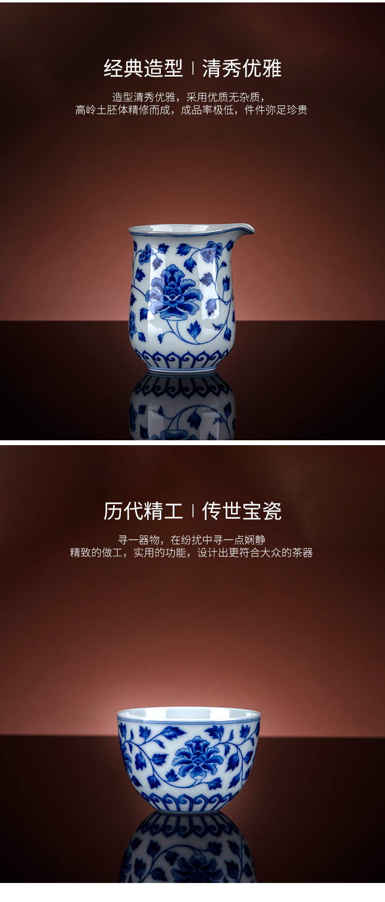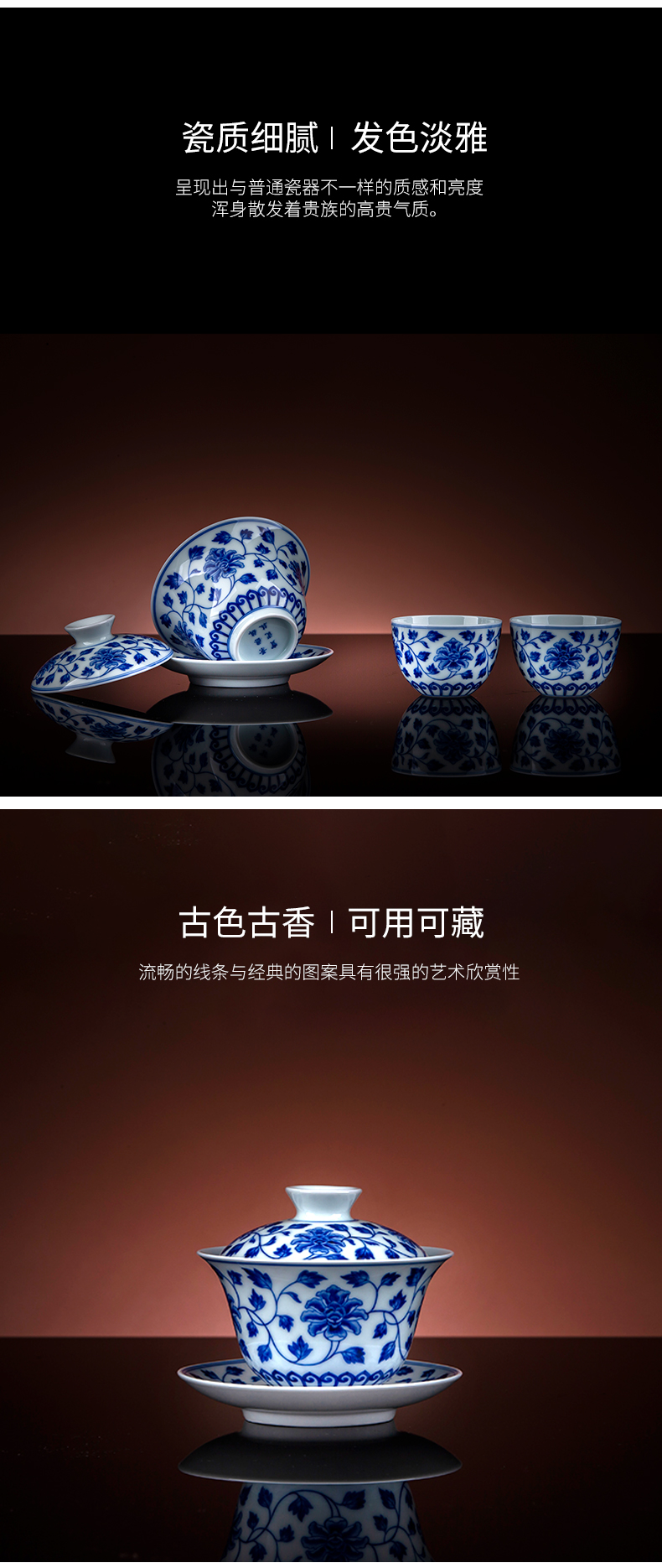 宝瓷林青花柴窑寿山福海金钟杯