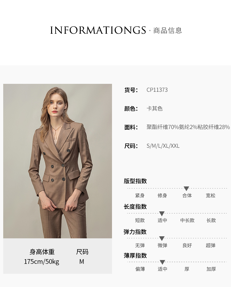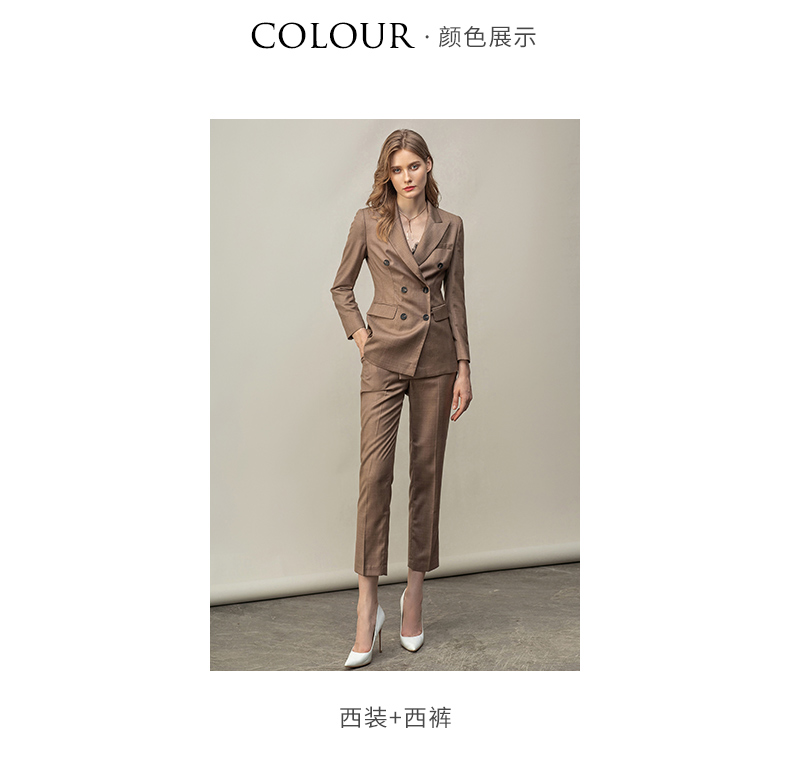 卡其色职业装女时尚气质女神范西装套装上班面试总裁正装工作服