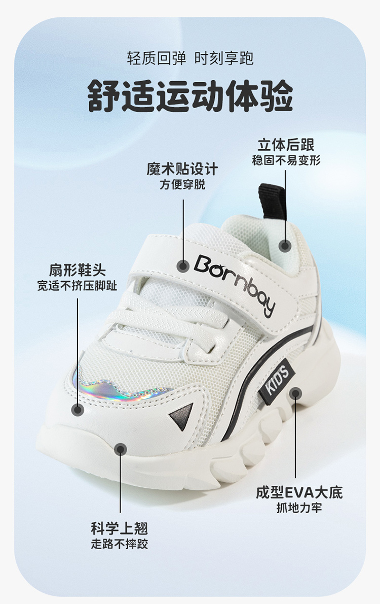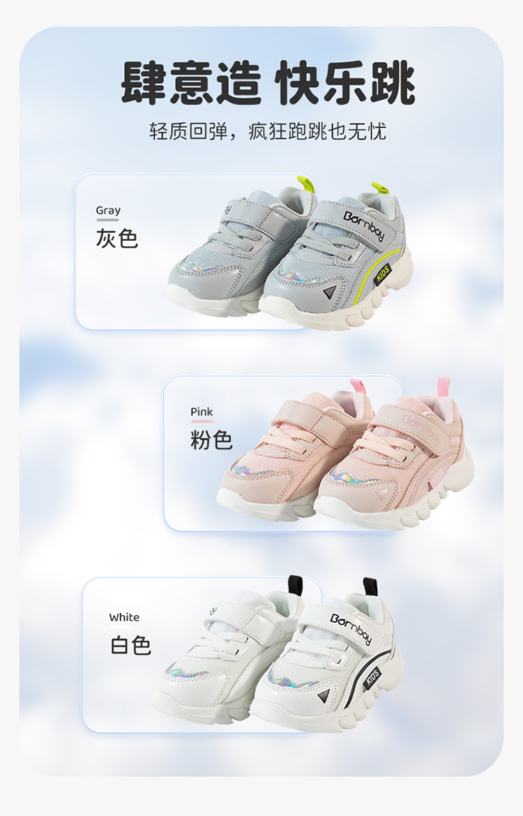 贝贝怡童鞋春秋款网面透气鞋男女童轻便防滑鞋儿童运动休闲鞋233X493