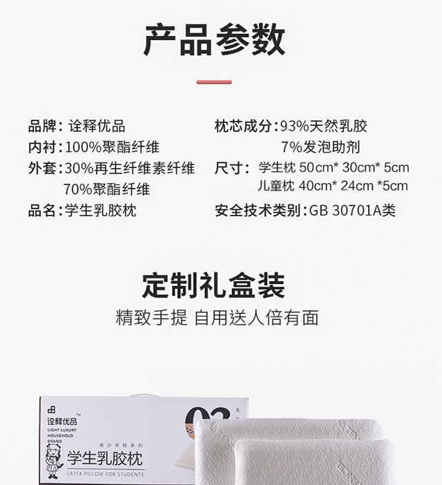 泰国天然乳胶枕学生枕:50*30*5
