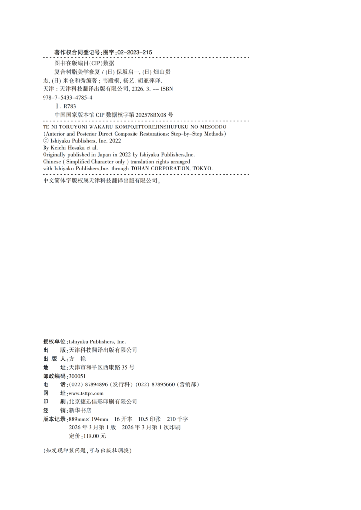 本书为引进版医学专业类图书。复合树脂修复是口腔医生在临床工作中最常使用的技术,该技术兼具坚固性、美观性,并可以提供与牙齿最佳的颜色匹配,是修复牙齿各类缺损的明智选择。本书从隔湿、窝洞预备、酸蚀和粘接、充填、修形抛光等方面介绍了修复治疗的原理、技巧和处理建议,并结合临床病例进行讲解。