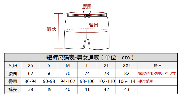 (建议男生可选择华工短袖T恤同一个尺码,女生参考臀围,可选择比短袖T恤小一码。)