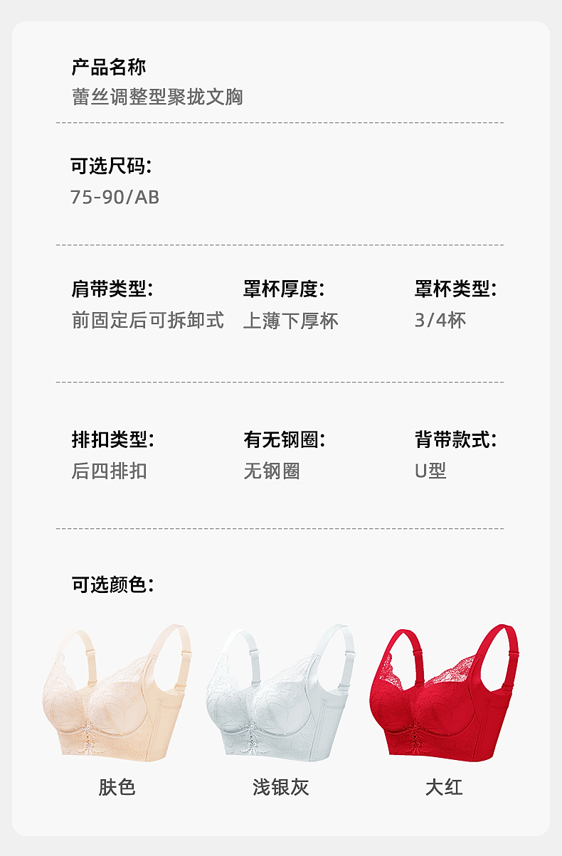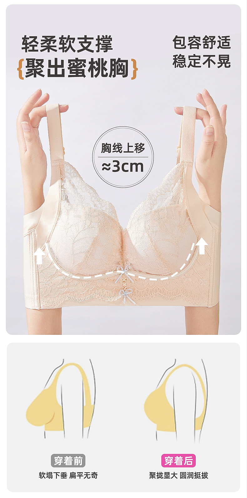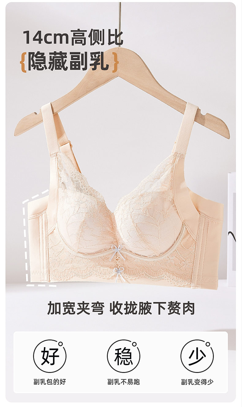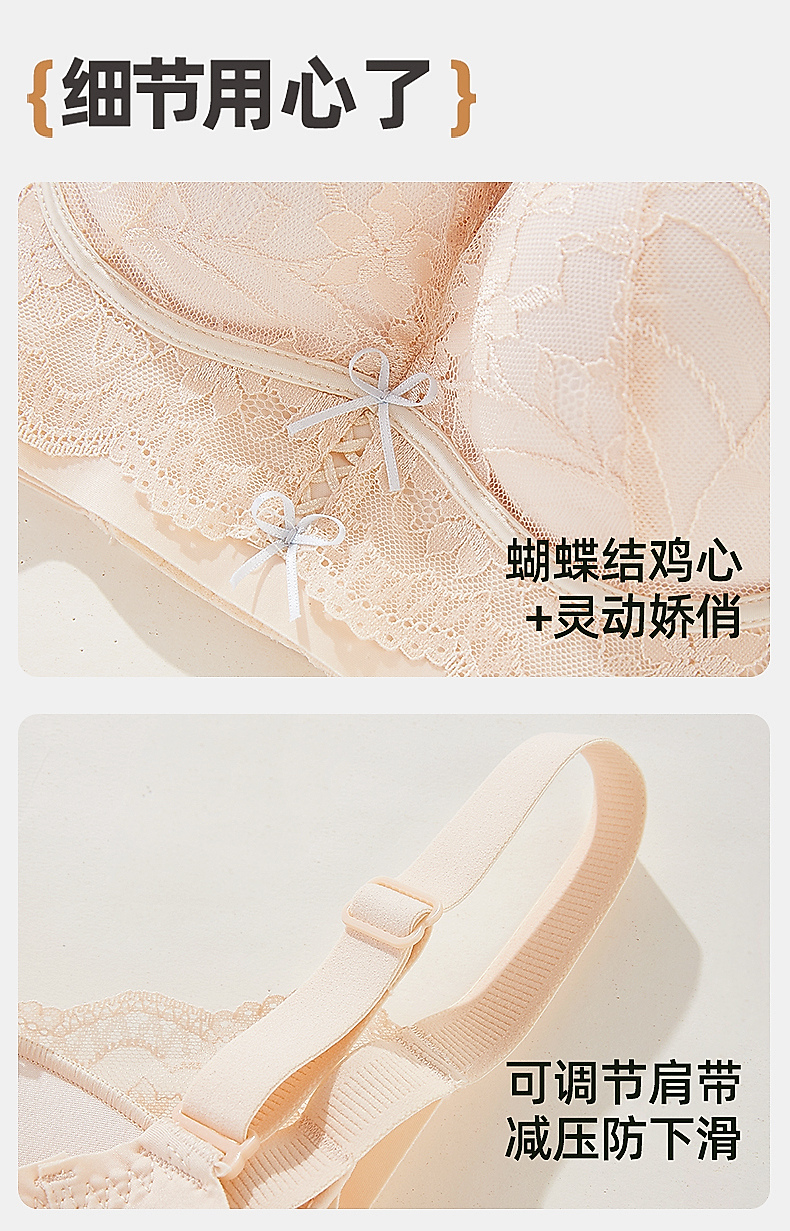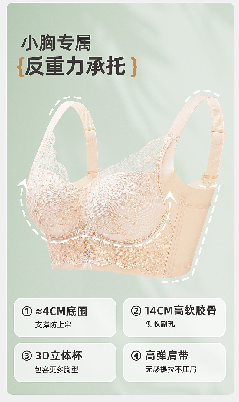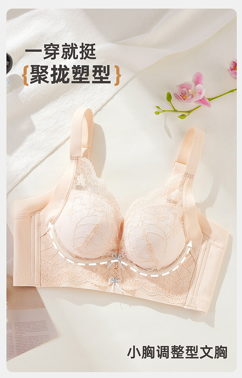 雅黛丽内衣女调整型无钢圈胸罩小胸平胸聚拢上托性感蕾丝文胸