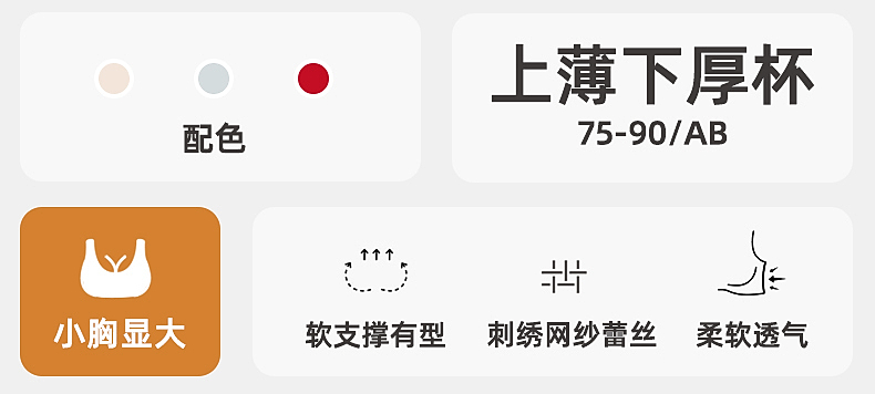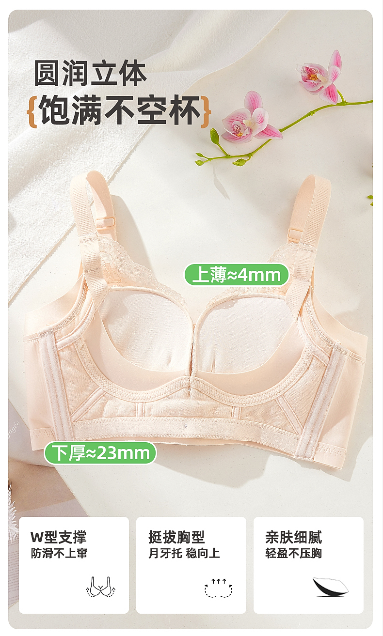 雅黛丽内衣女大胸显小文胸薄款蕾丝无钢圈防下垂胸罩