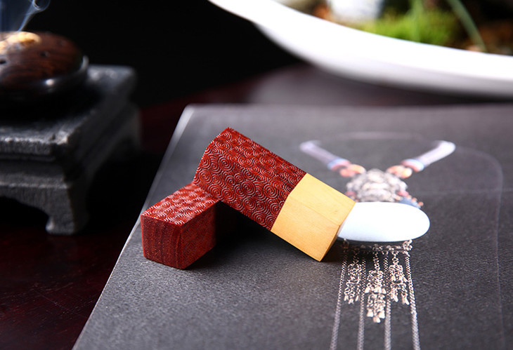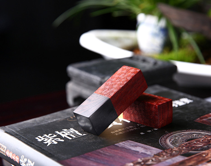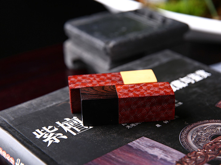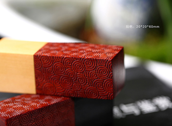 小叶紫檀云纹印章:本款宝贝精选紫檀基础好料雕刻而成,颜色红润细腻,手感舒适,雕工精细,极具趣意。宝贝周体雕刻祥云图案,寓意着吉祥如意,幸福平安。紫檀的主体与其他木材的完美结合,让印章更显古色古香和趣味。印章是中国古代文人雅士最为喜爱的文房用具之一,优质的材料,富有创意的篆刻内容,可以为您增添更多独具特色的魅力!将这样的一款宝贝带回家,不仅可以欣赏到紫檀之美,还能时时为您在字里行间增添雅致气息,不亦乐乎!