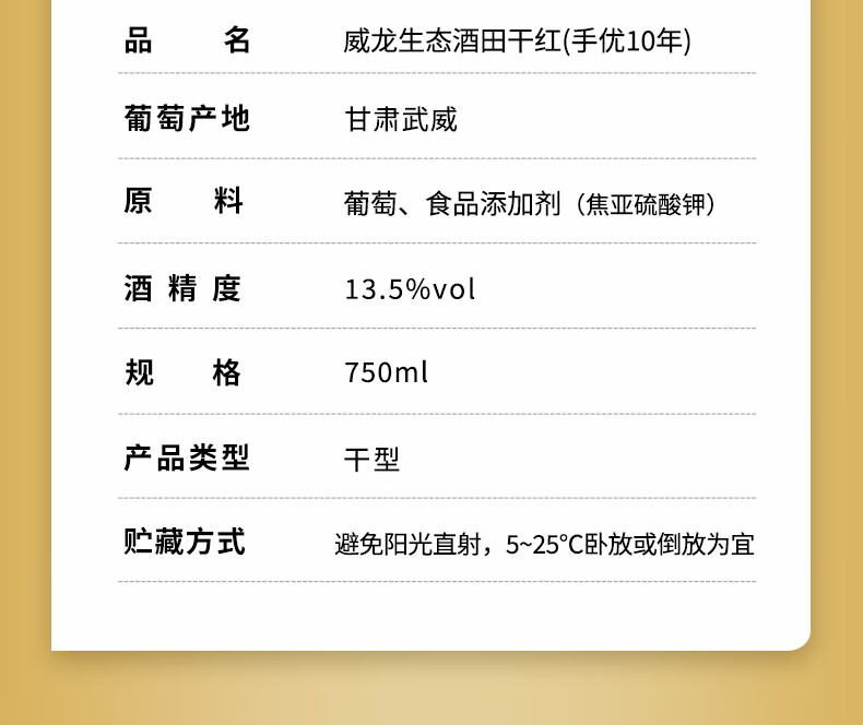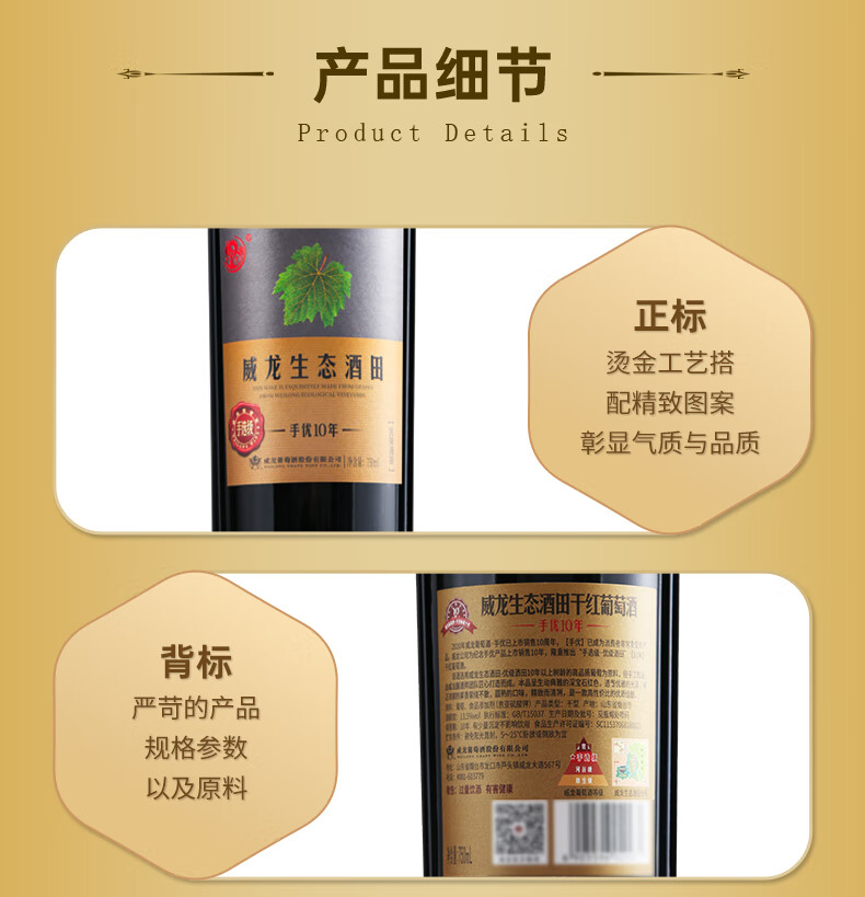 威龙红酒生态酒田优级酒田手选级10年干红葡萄酒750ml手选级10年干红