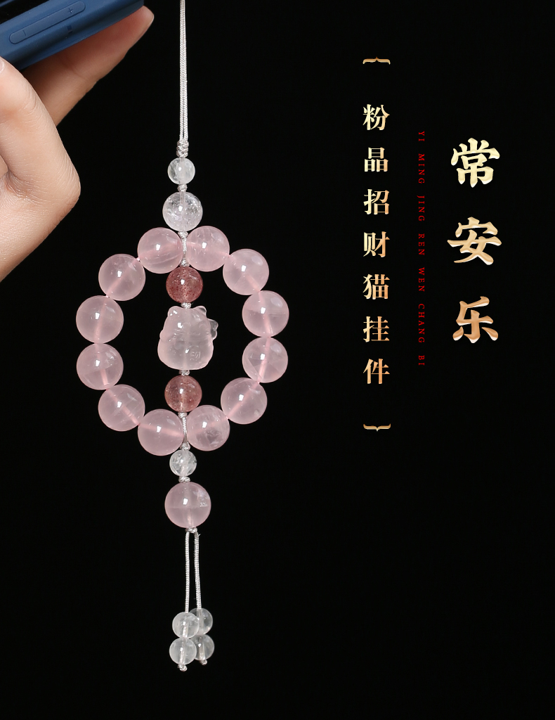 【祈愿吉品】粉晶/紫晶搭招财猫挂件