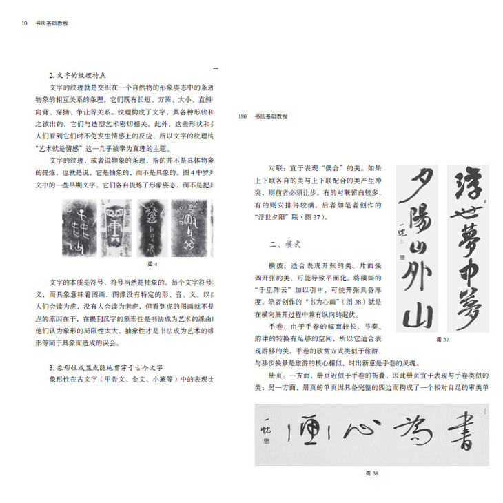文字的纹理就是交织在一个自然物的形象姿态中的条理,或交织在物象与物象的相互关系的条理,它们既有长短、方面、大小、直斜等形状,又有疏密、向背、穿插、争让等关系。纹理构成了文字,其各种形状和关系本身的美是呼之欲出的,它们与造型艺术密切相关。此外,这些形状和关系都是感性形式,人们看到它们时不免发生情感上的反应,