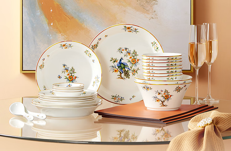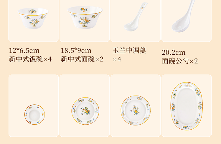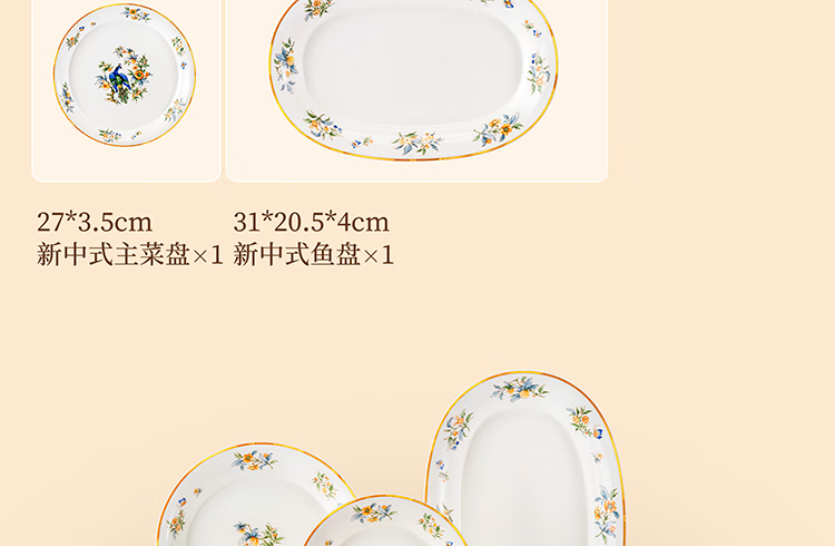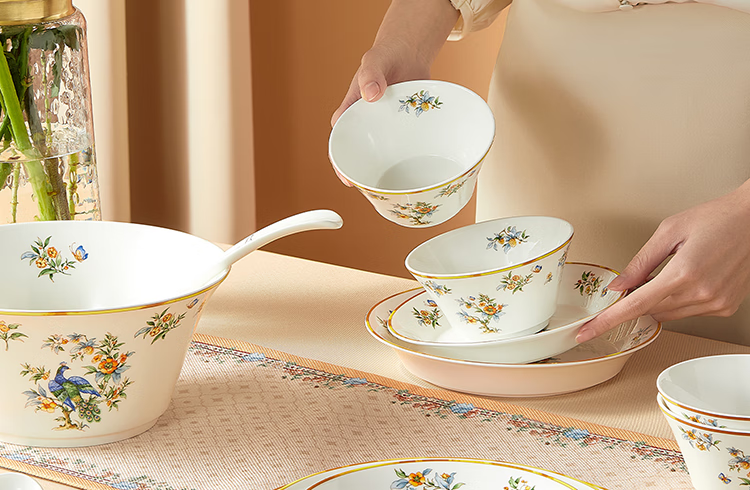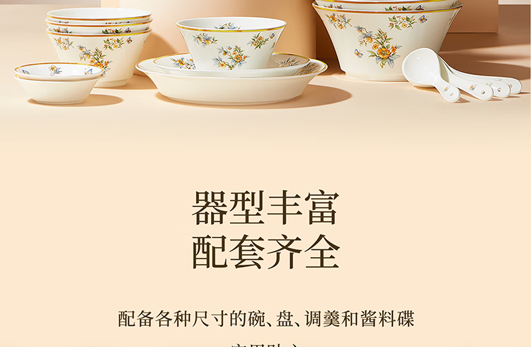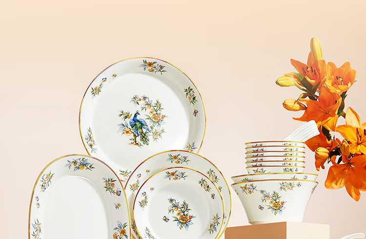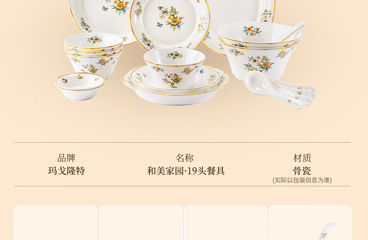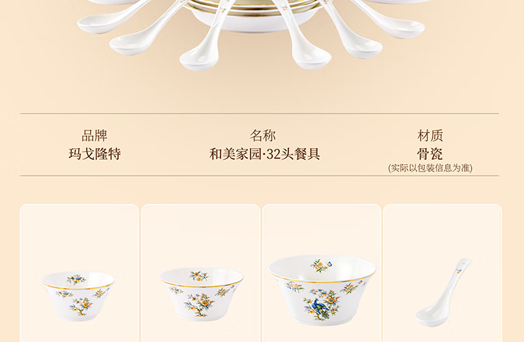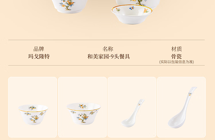 【6F】玛戈隆特年货节和美家园骨瓷餐具家用中式餐具套装送礼乔迁礼盒包装 9头 新中式餐具【2人份】