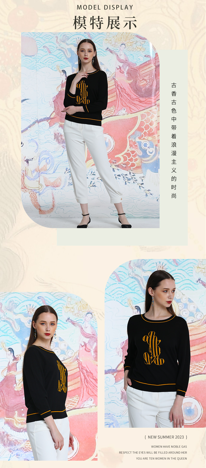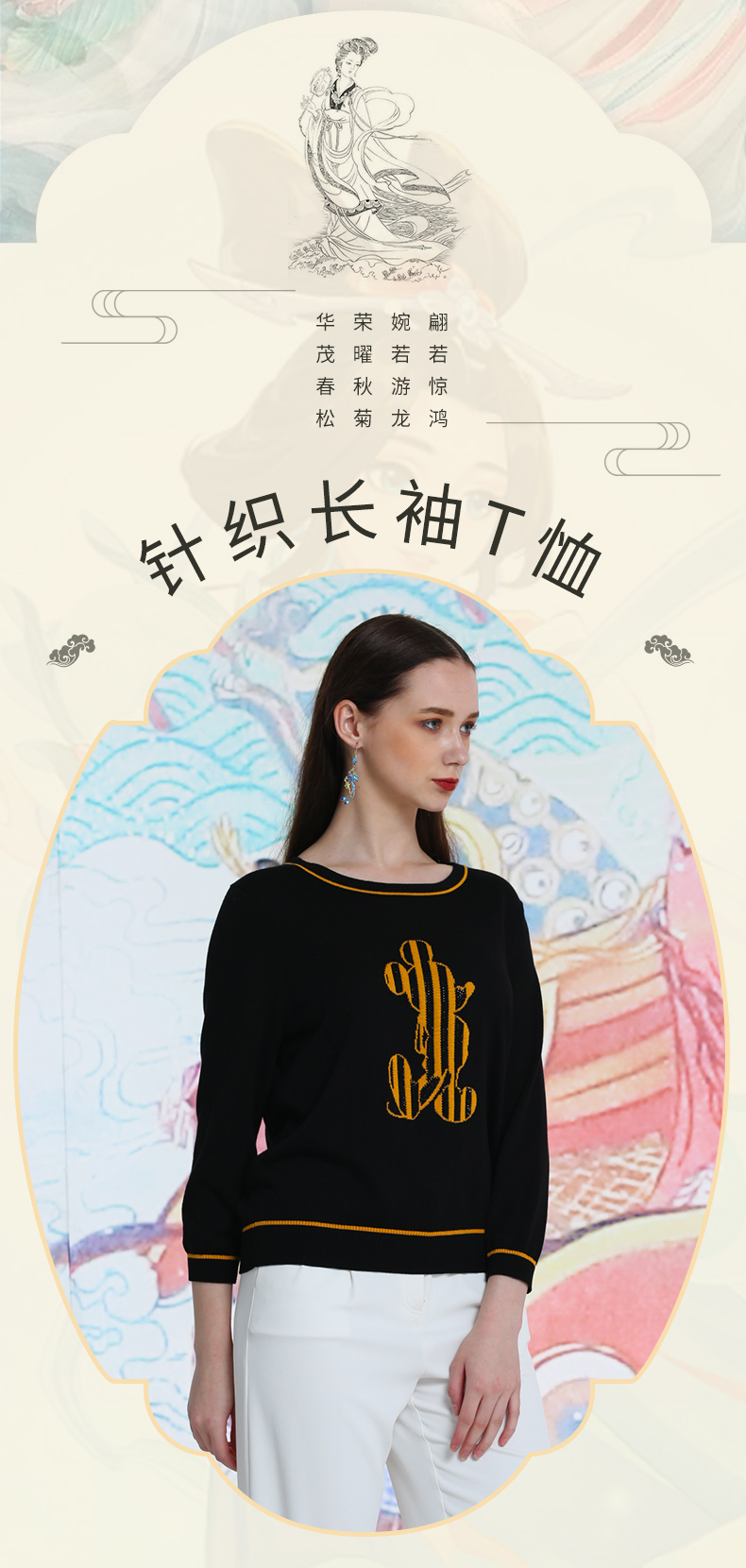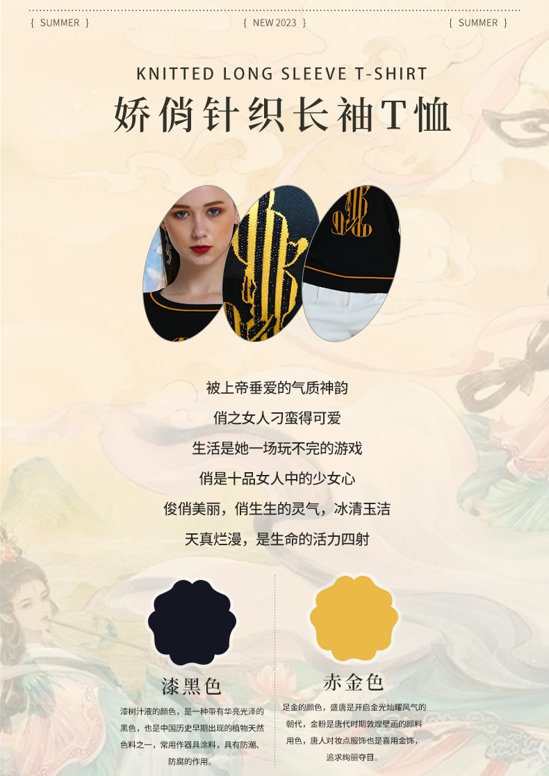 品牌风格:源自千年文学和万年艺术的时装,让你的气质内涵一枝独秀,精彩的品质,华丽的风格,炫耀的视觉,让你的衣品从此与众不同,标记你深厚的文化内涵与艺术气息。