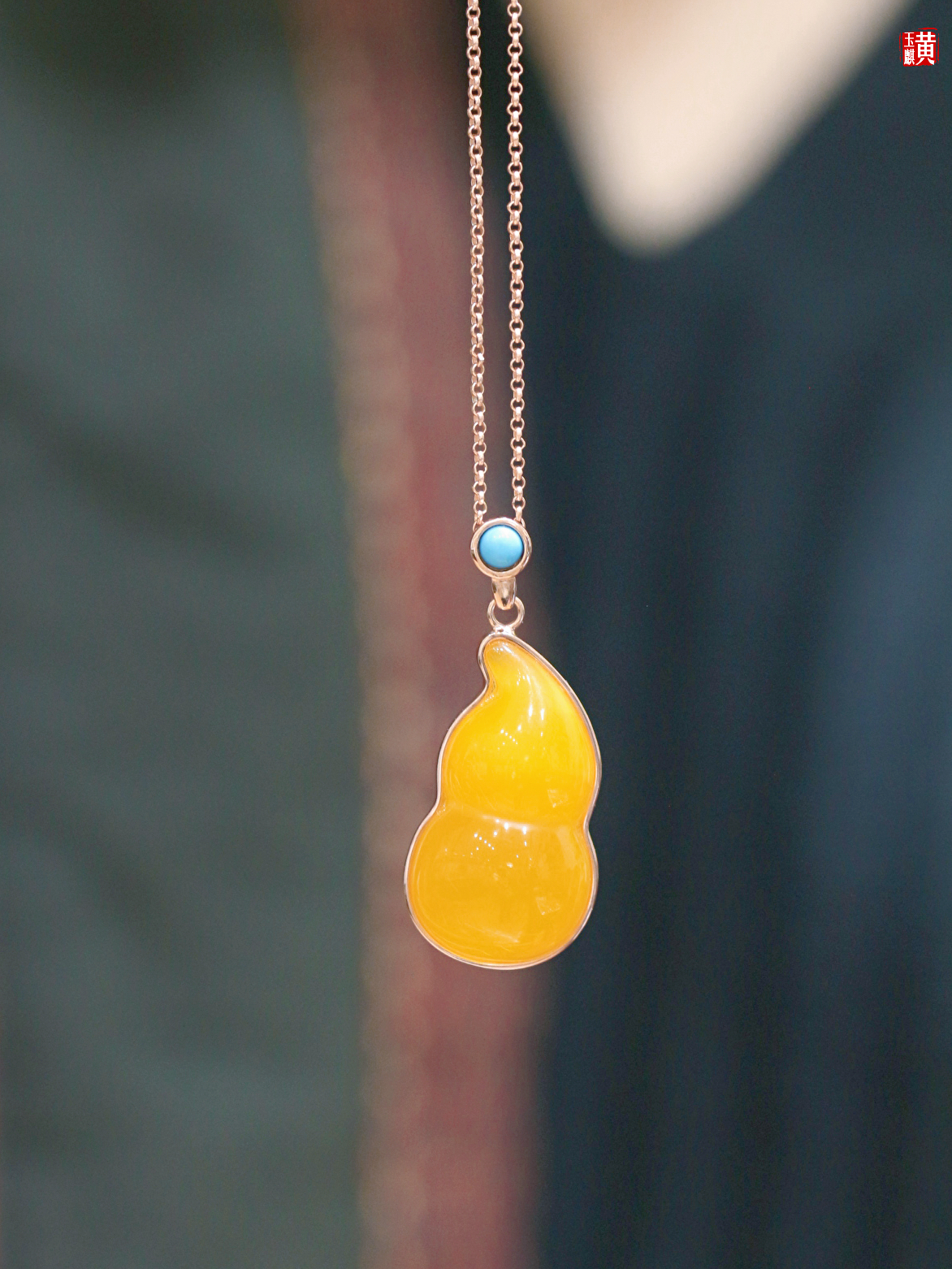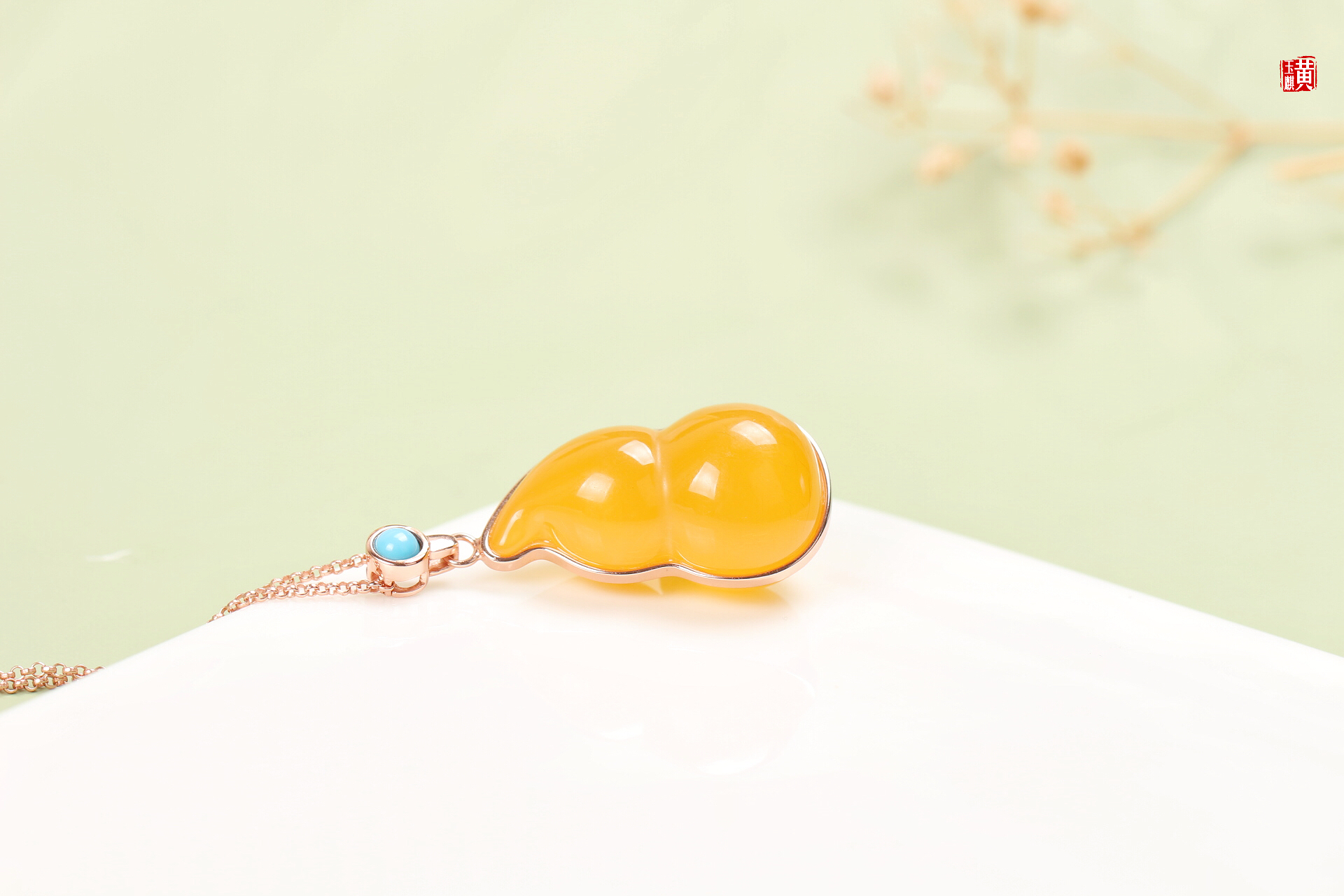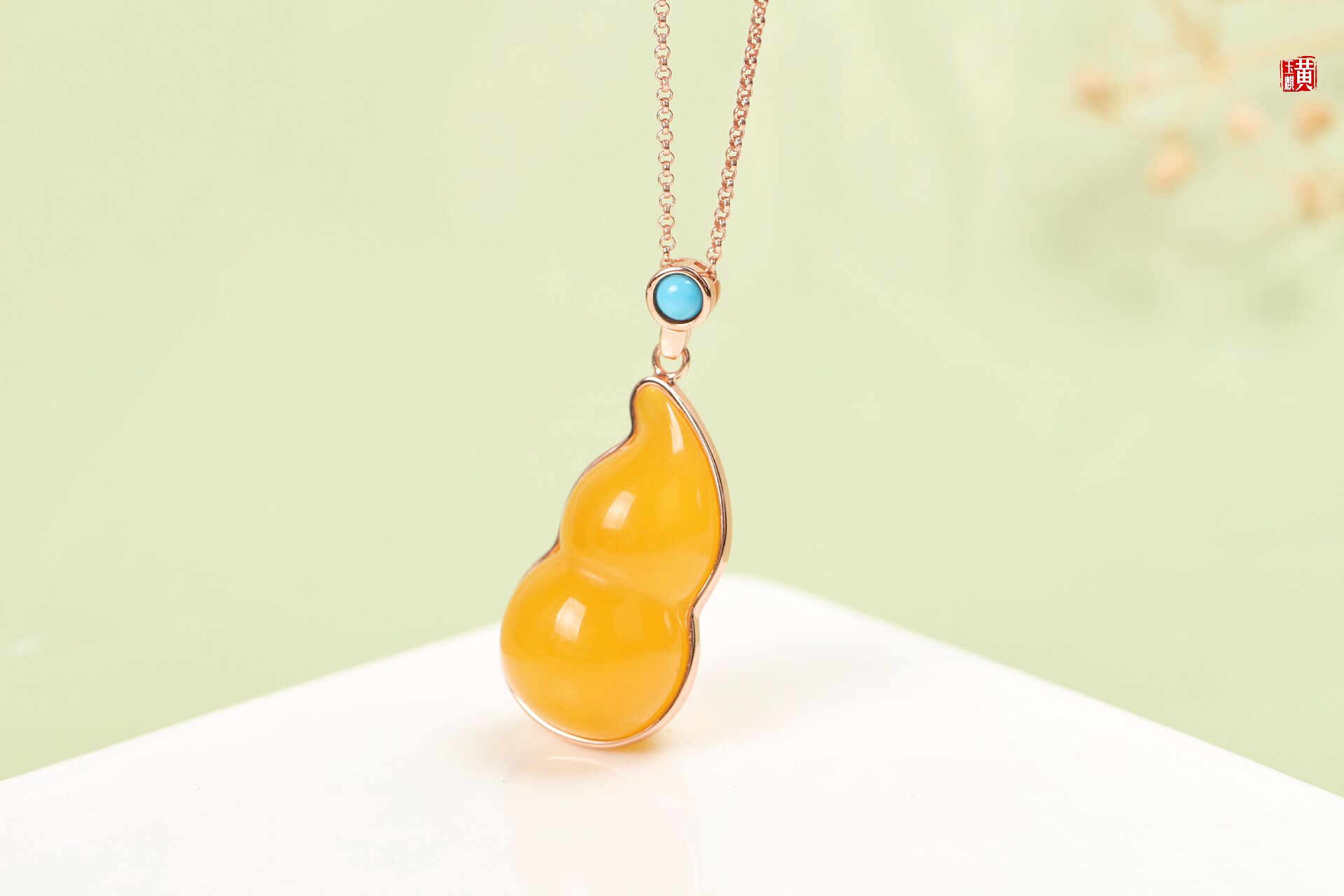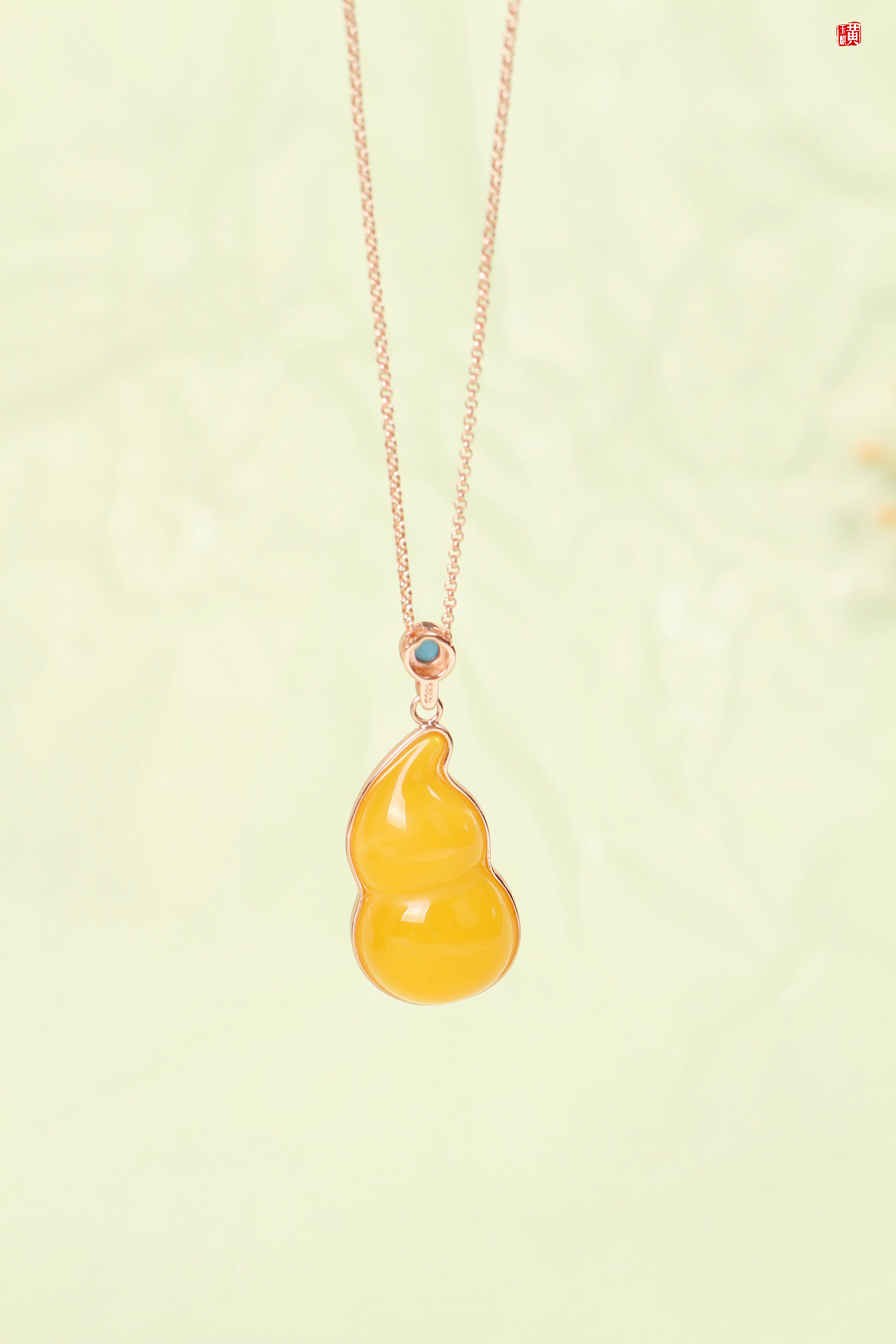 【福禄双全】蜜蜡葫芦吊坠,925银镶