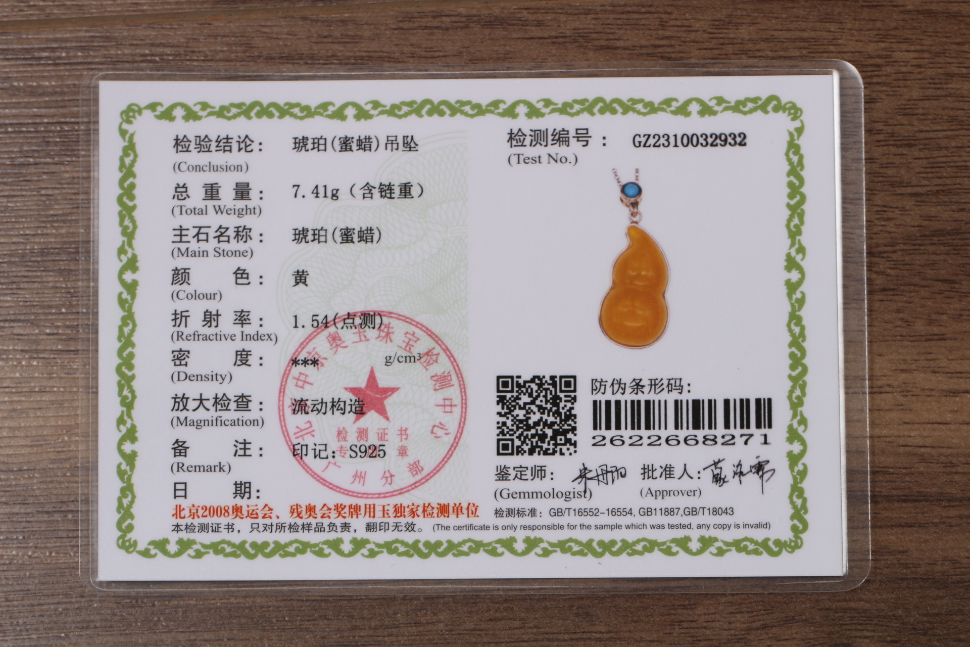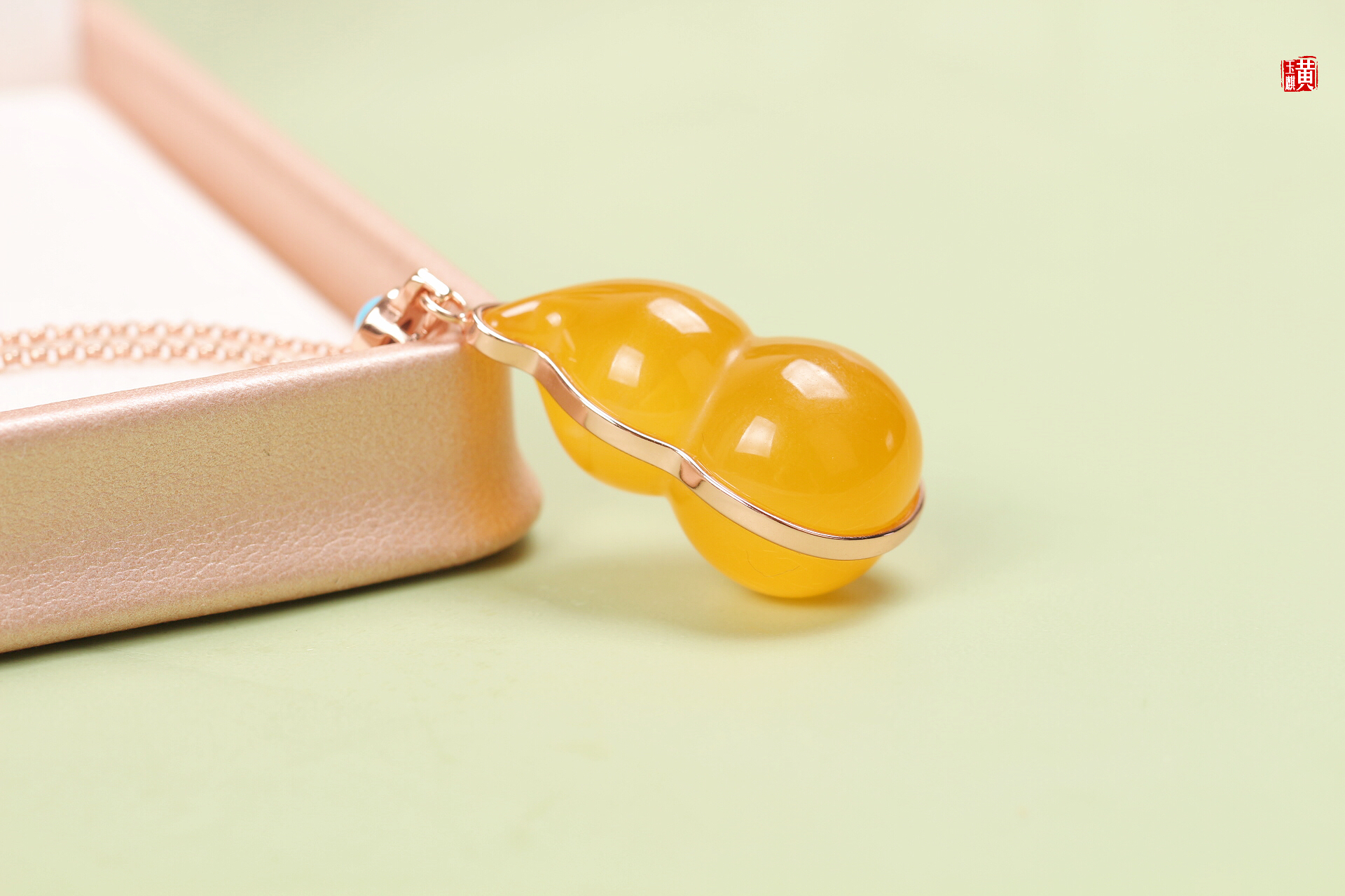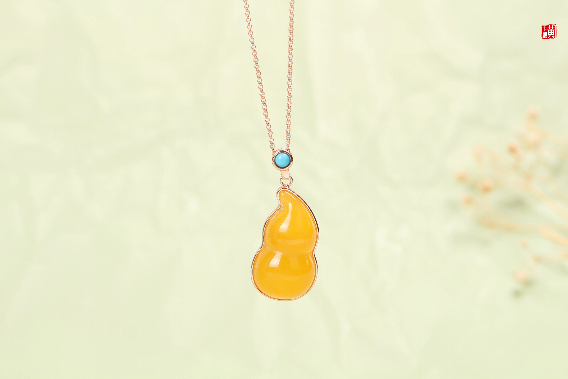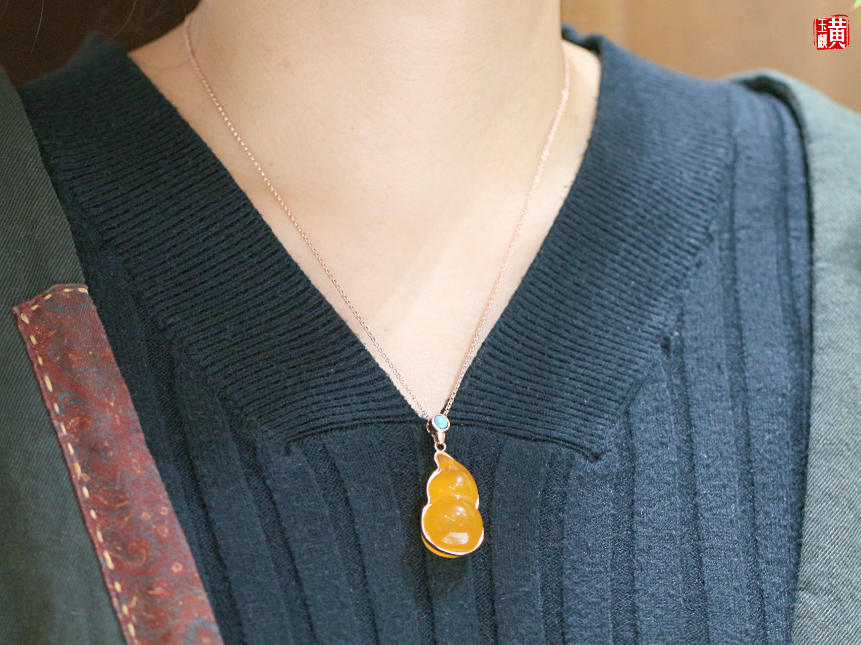 【福禄双全】蜜蜡葫芦吊坠,925银镶