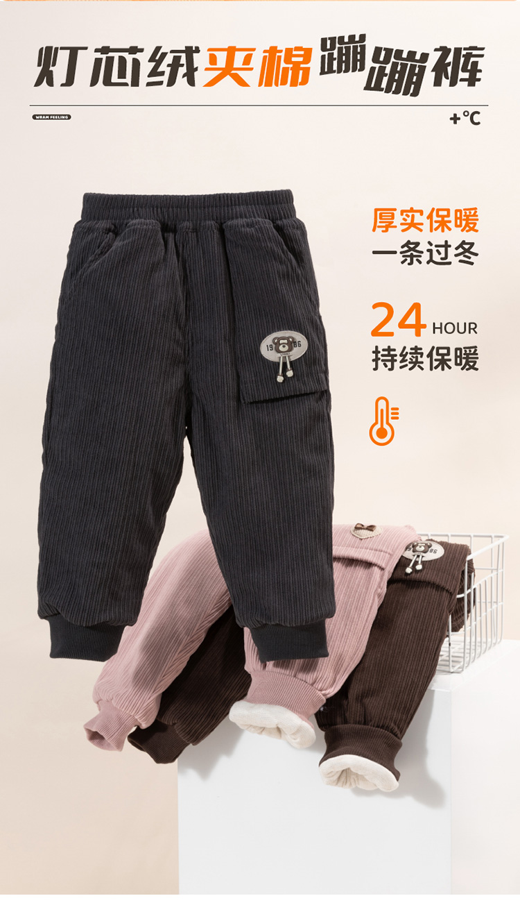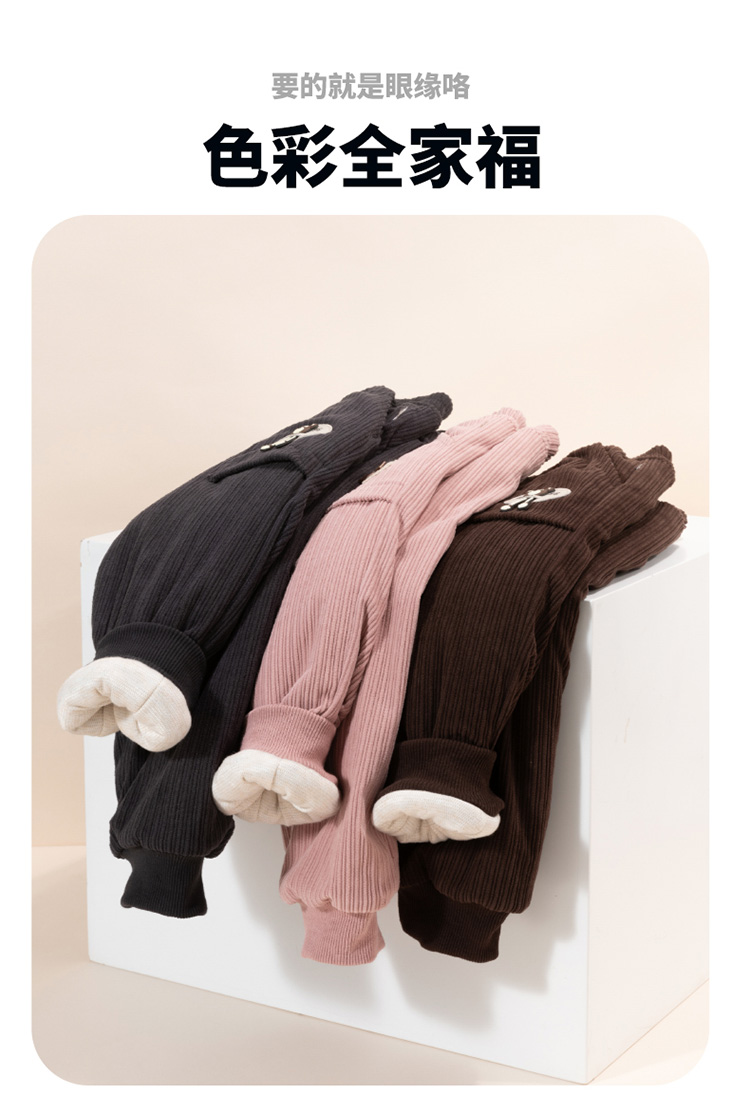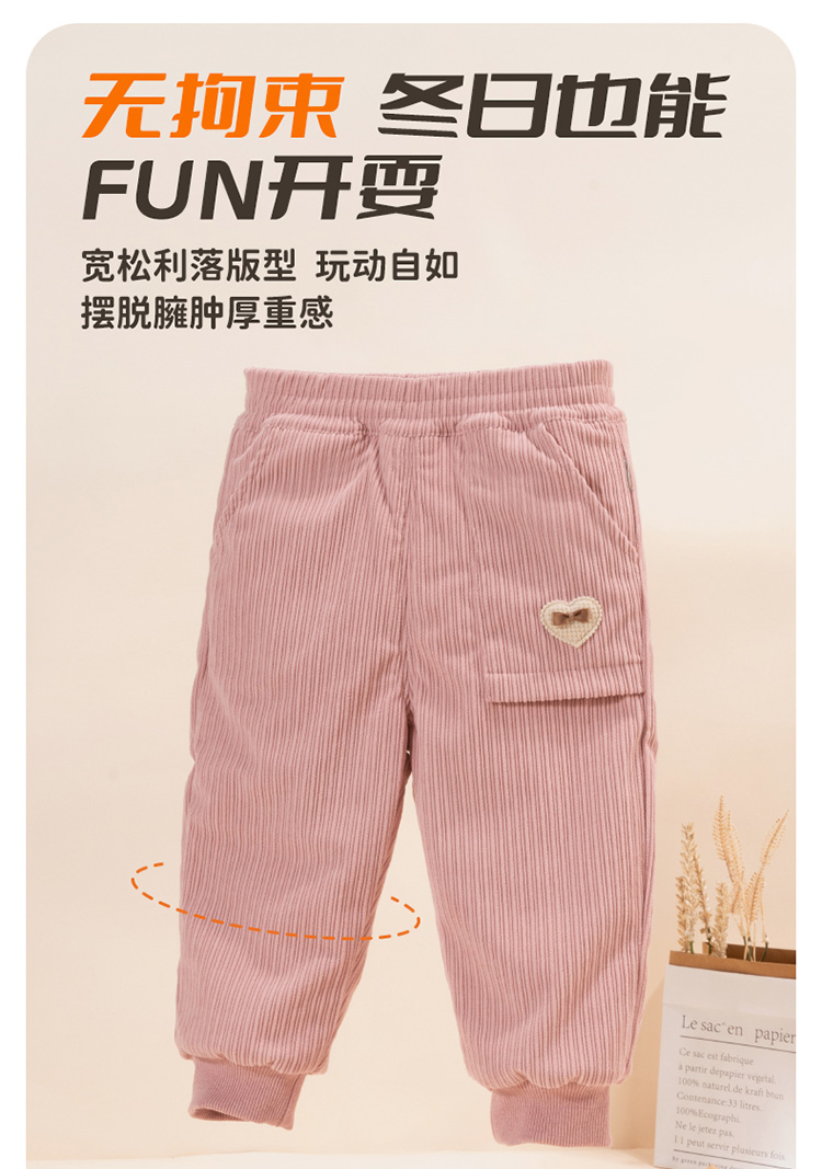 贝贝怡童装女童休闲束脚裤秋冬新款加绒保暖儿童长裤灯芯绒运动裤ZB4DK021