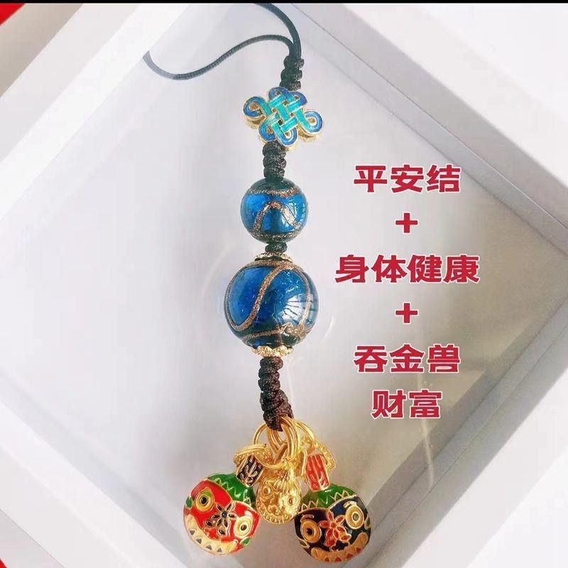 同款好运香灰琉璃手机绳吊坠中国结平安结吞金兽挂件饰品礼物
