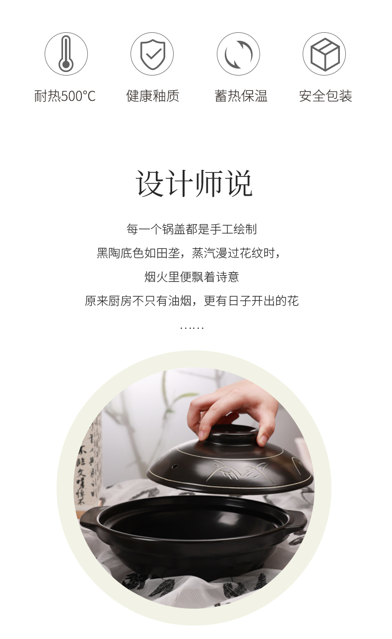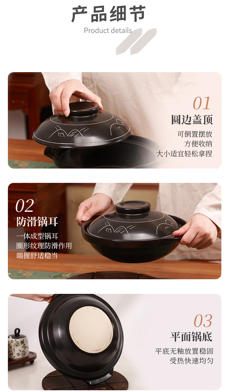 【陌上花开浅煲】陶煲王陶瓷煲仔饭专用砂锅广东啫啫煲浅口土沙锅耐高温可干烧