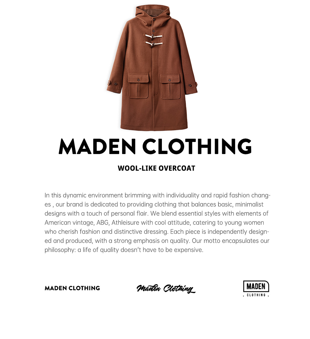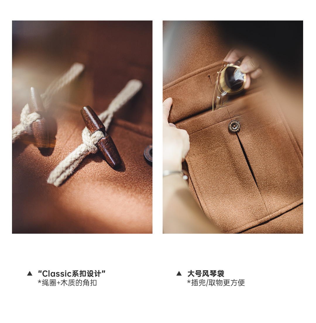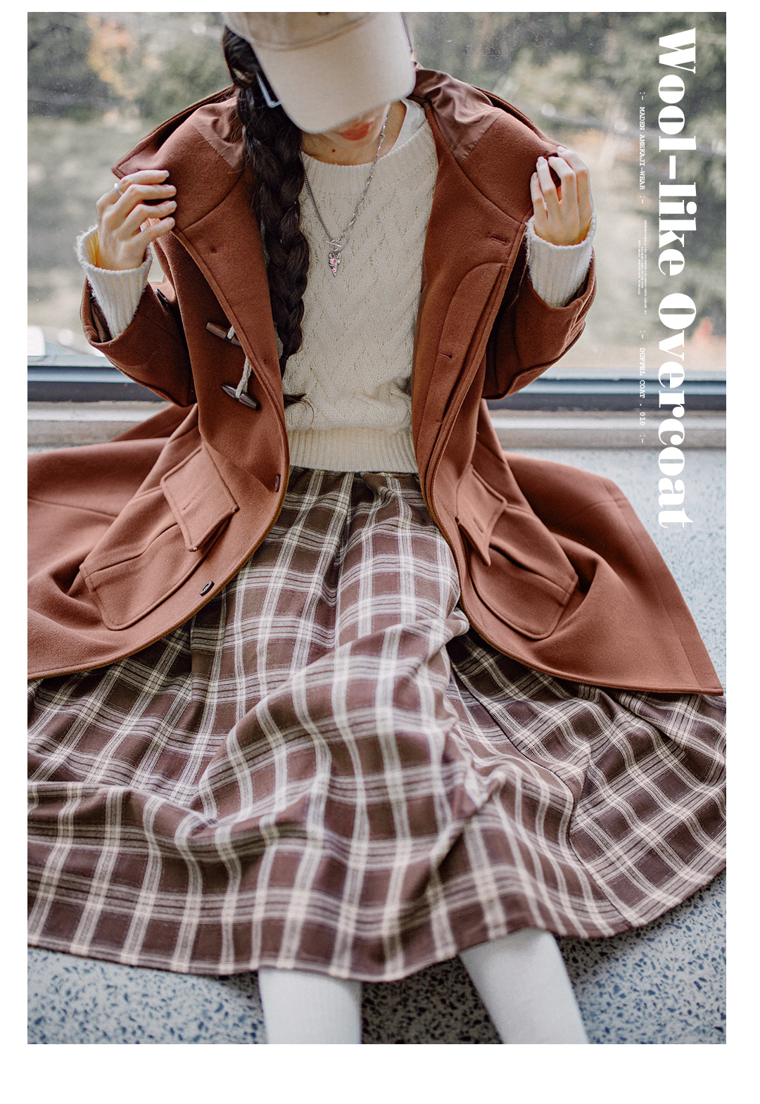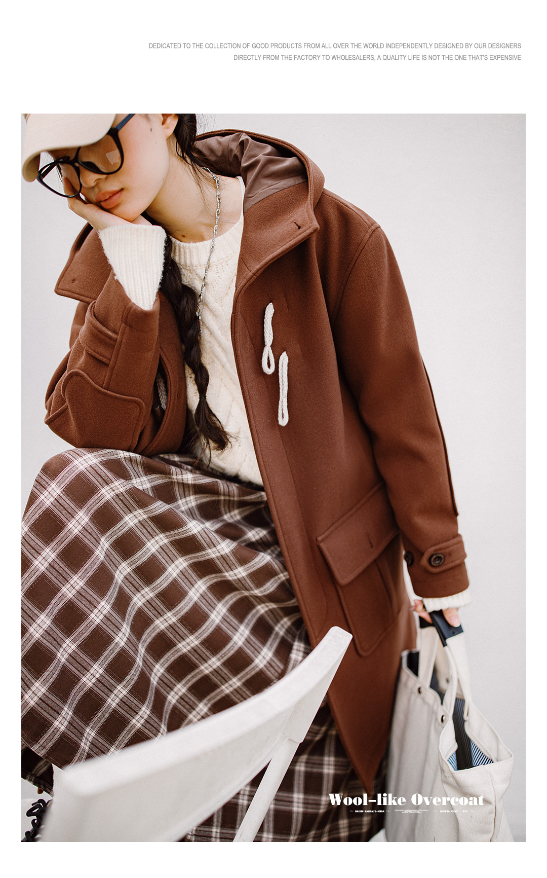 马登复古学院风牛角扣毛呢大衣中长款宽松通勤连帽厚外套冬季女