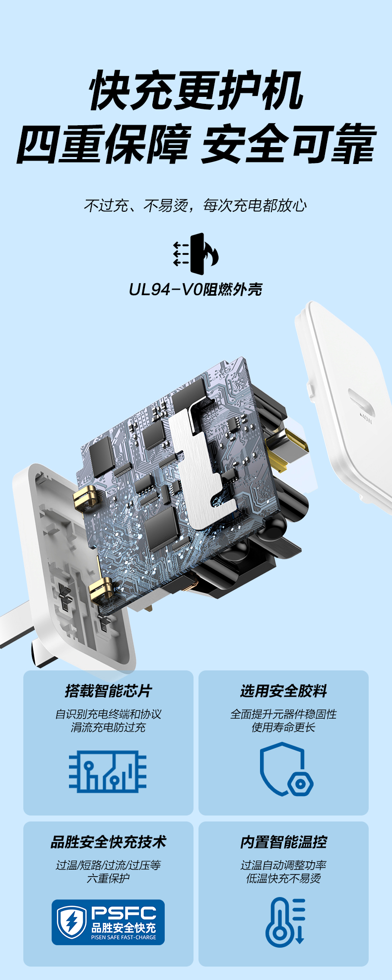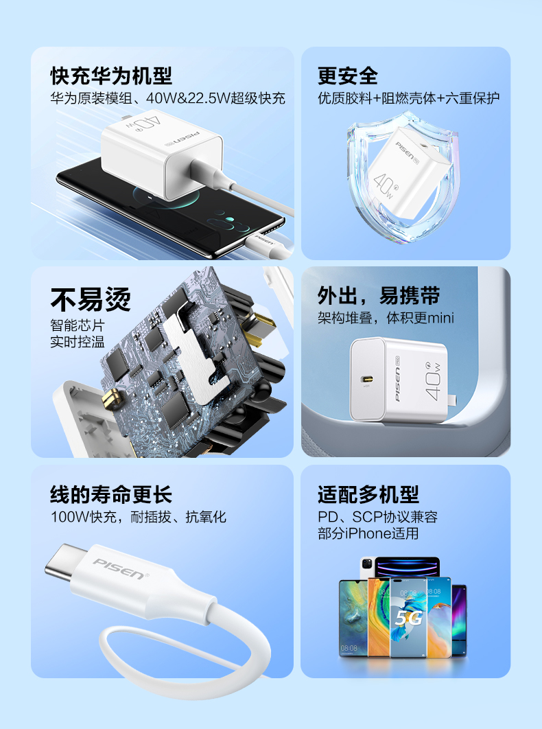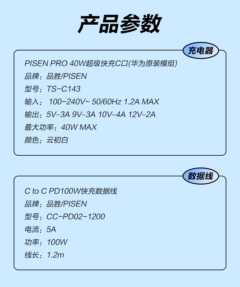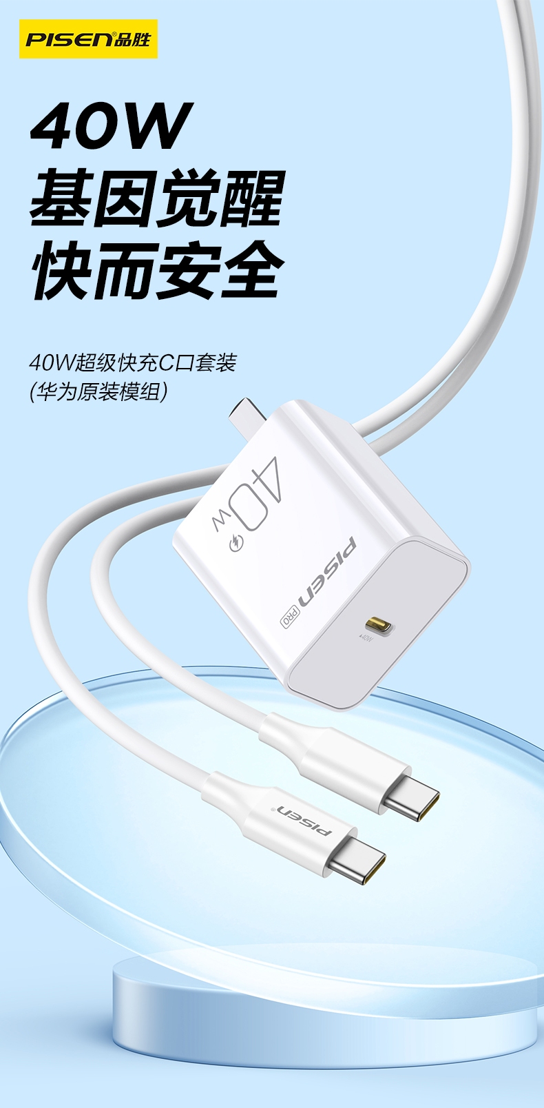 品胜 40W超级快充C口(华为原装模组)充电器 华为官方授权 100W大电流数据线