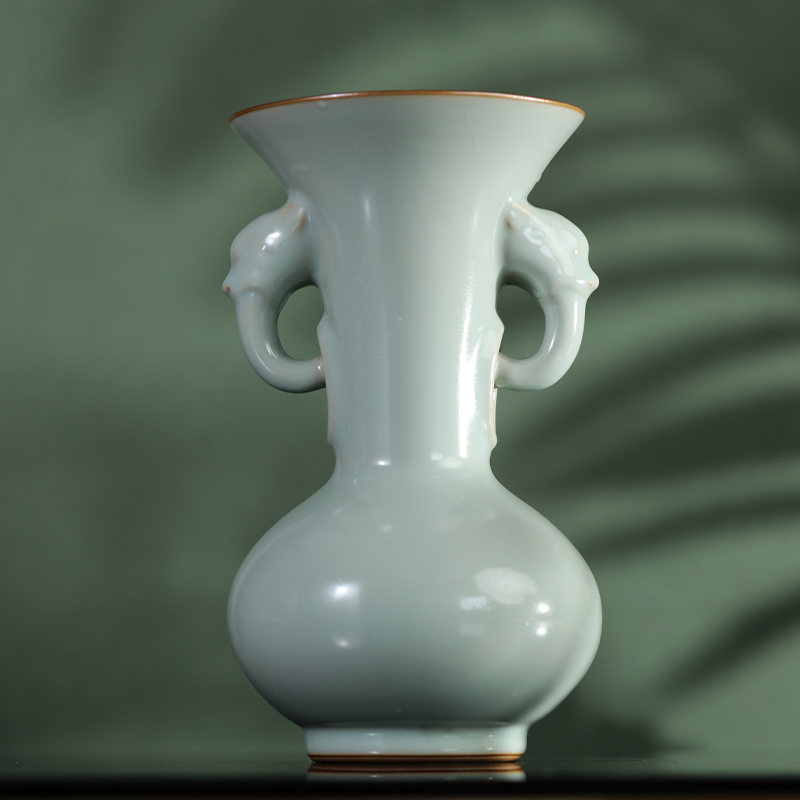 问鼎汝瓷/鼎峰系列/天青/老款精工/象耳瓶