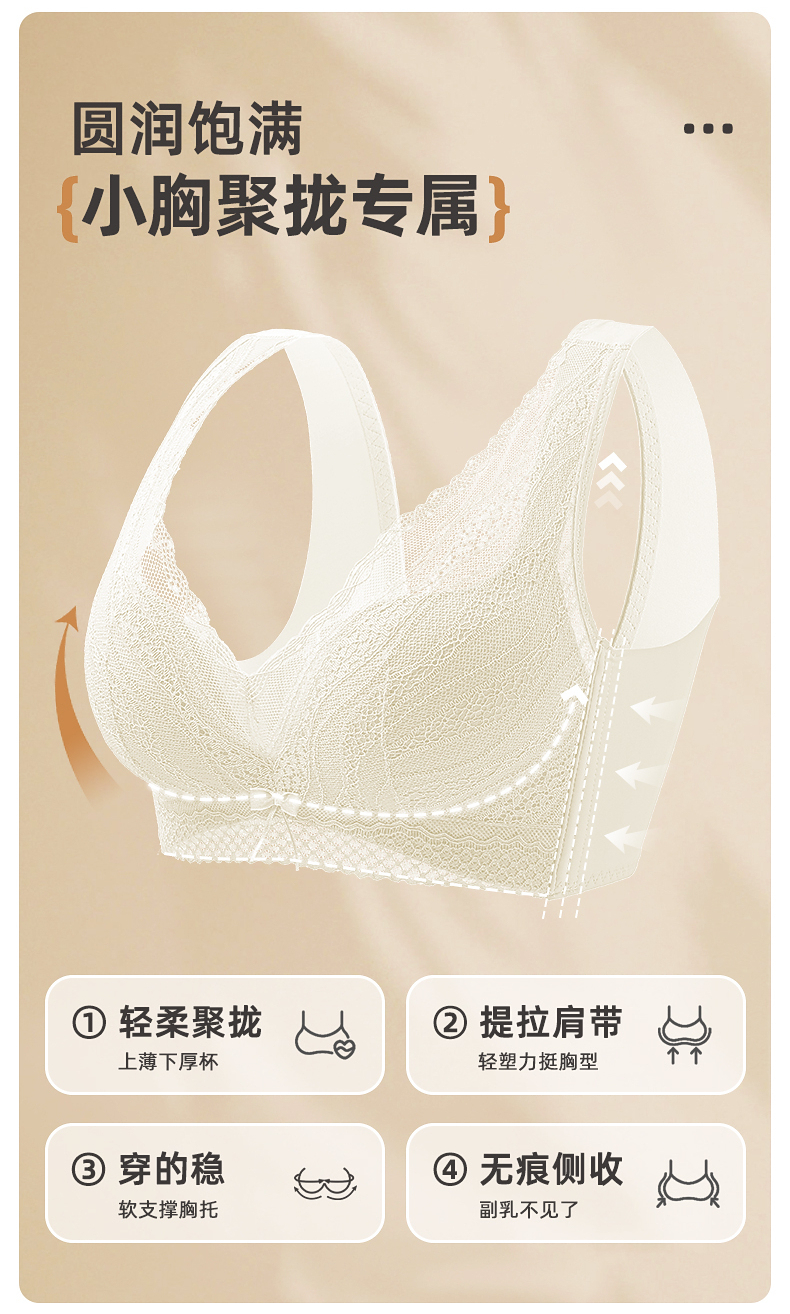 雅黛俪女士文胸小胸聚拢显大上薄下厚杯性感蕾丝内衣胸罩