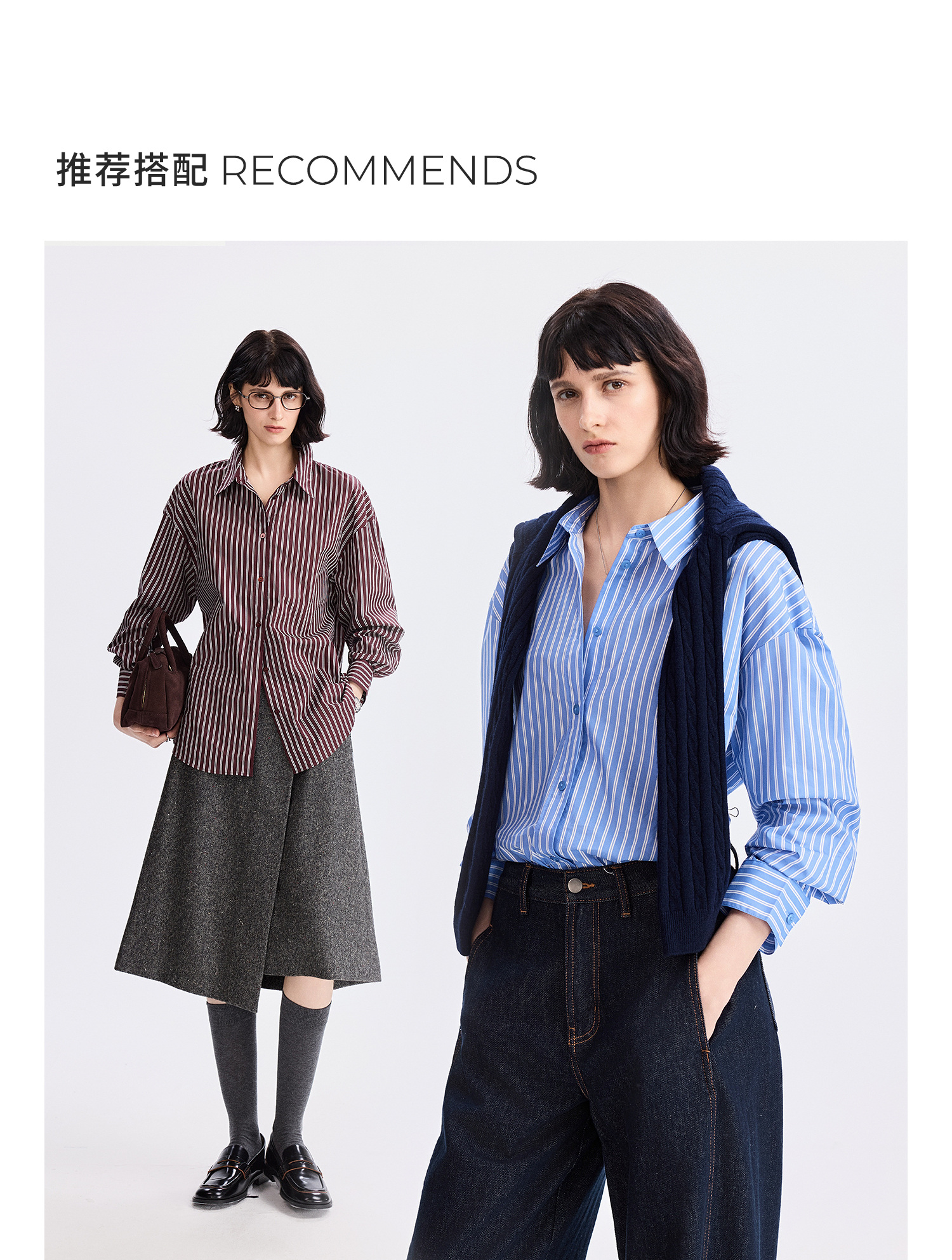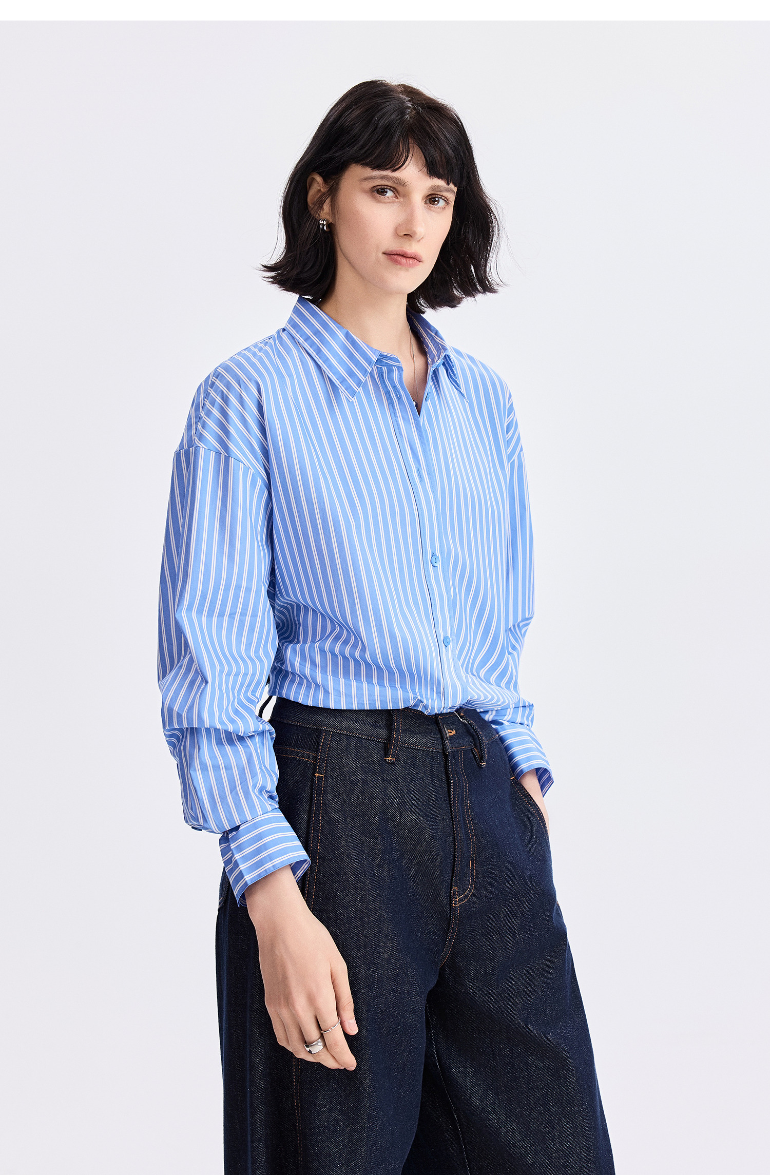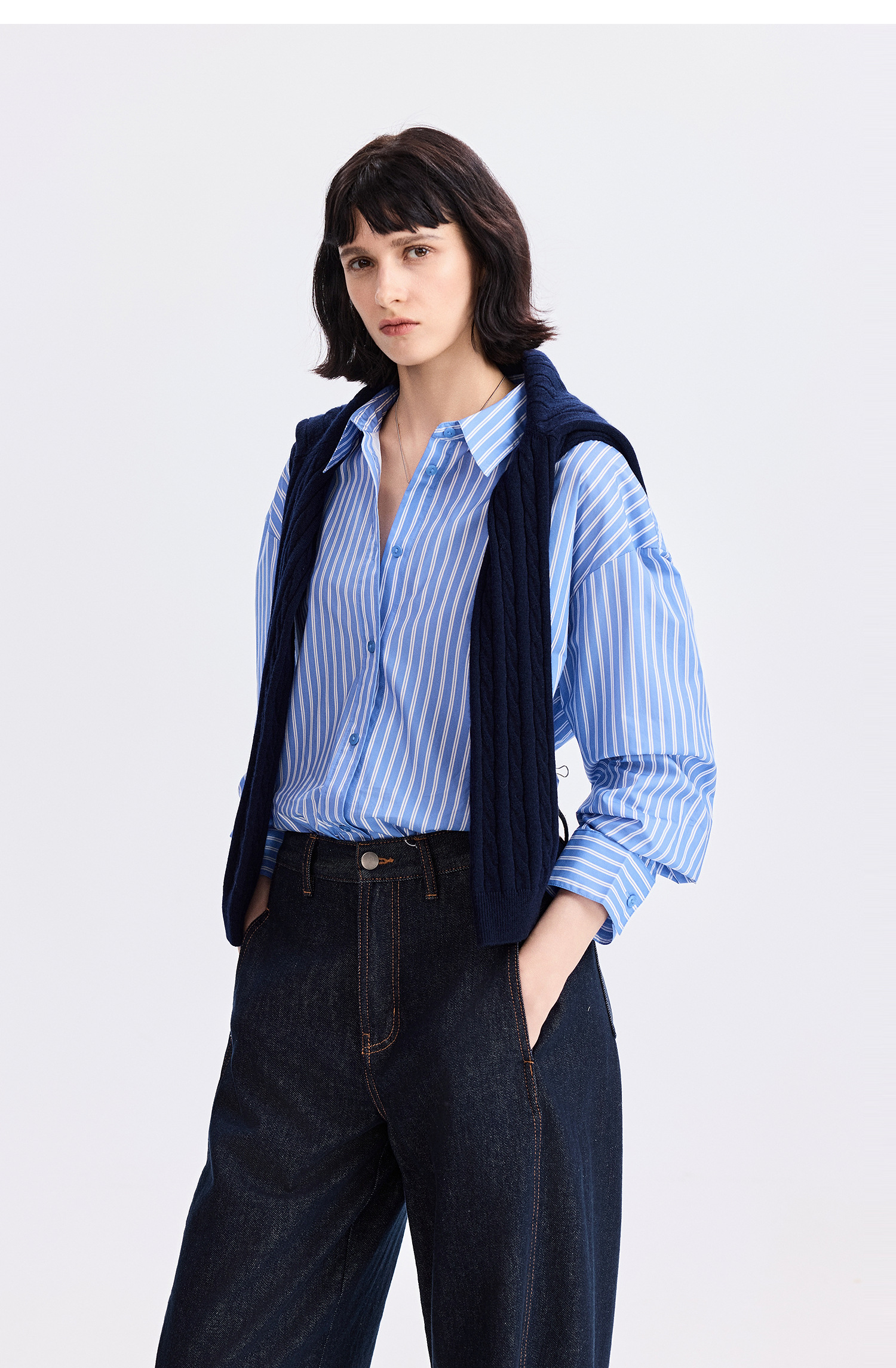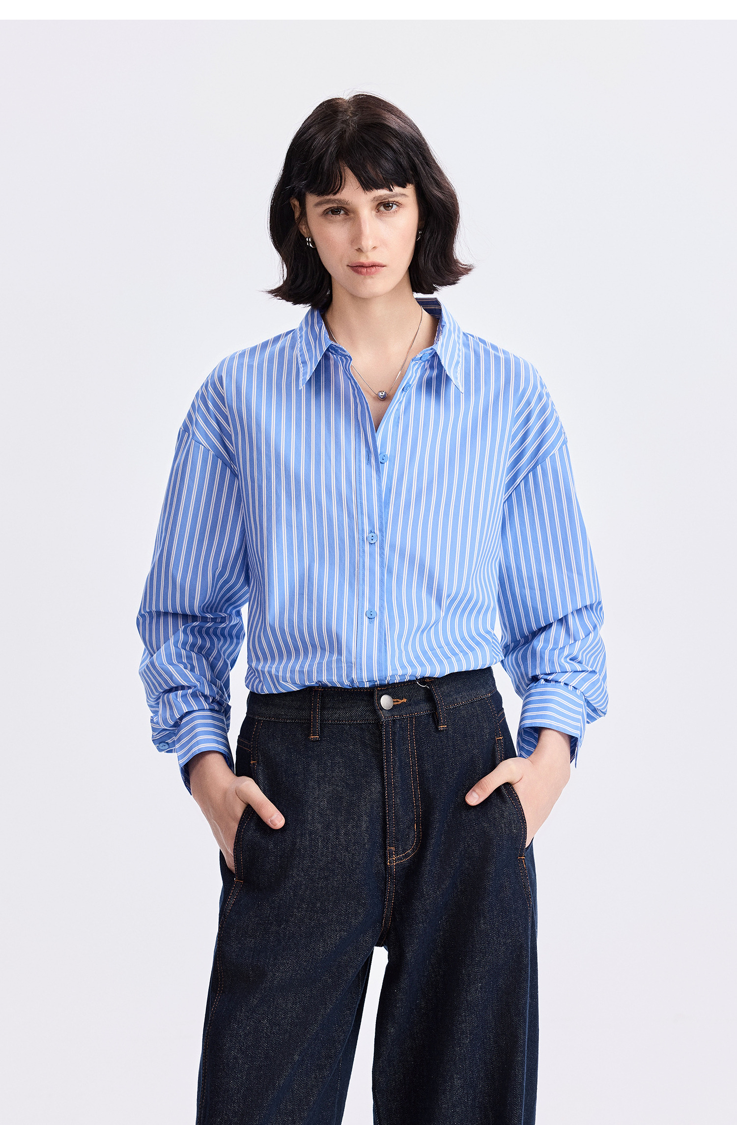 棉仓366604034-蓝色印花条纹长袖衬衫女25秋冬纯棉微宽松显瘦叠穿衬衣