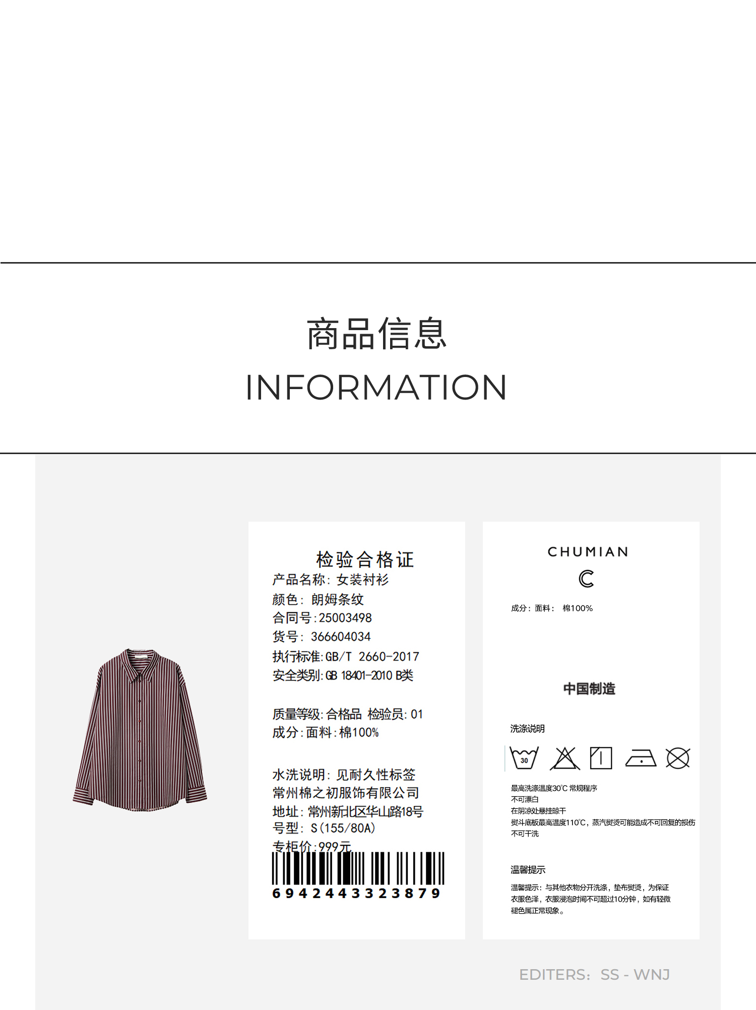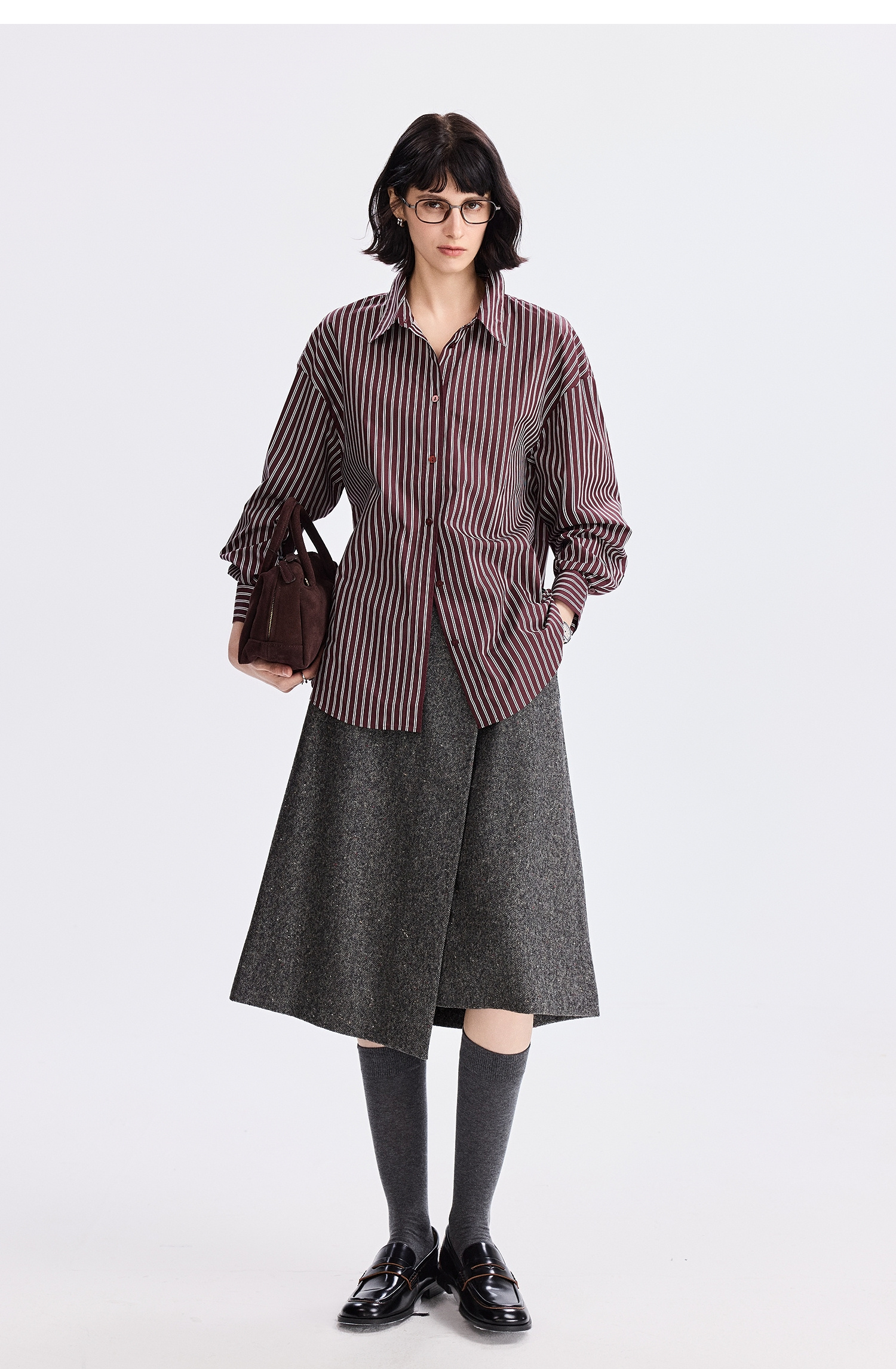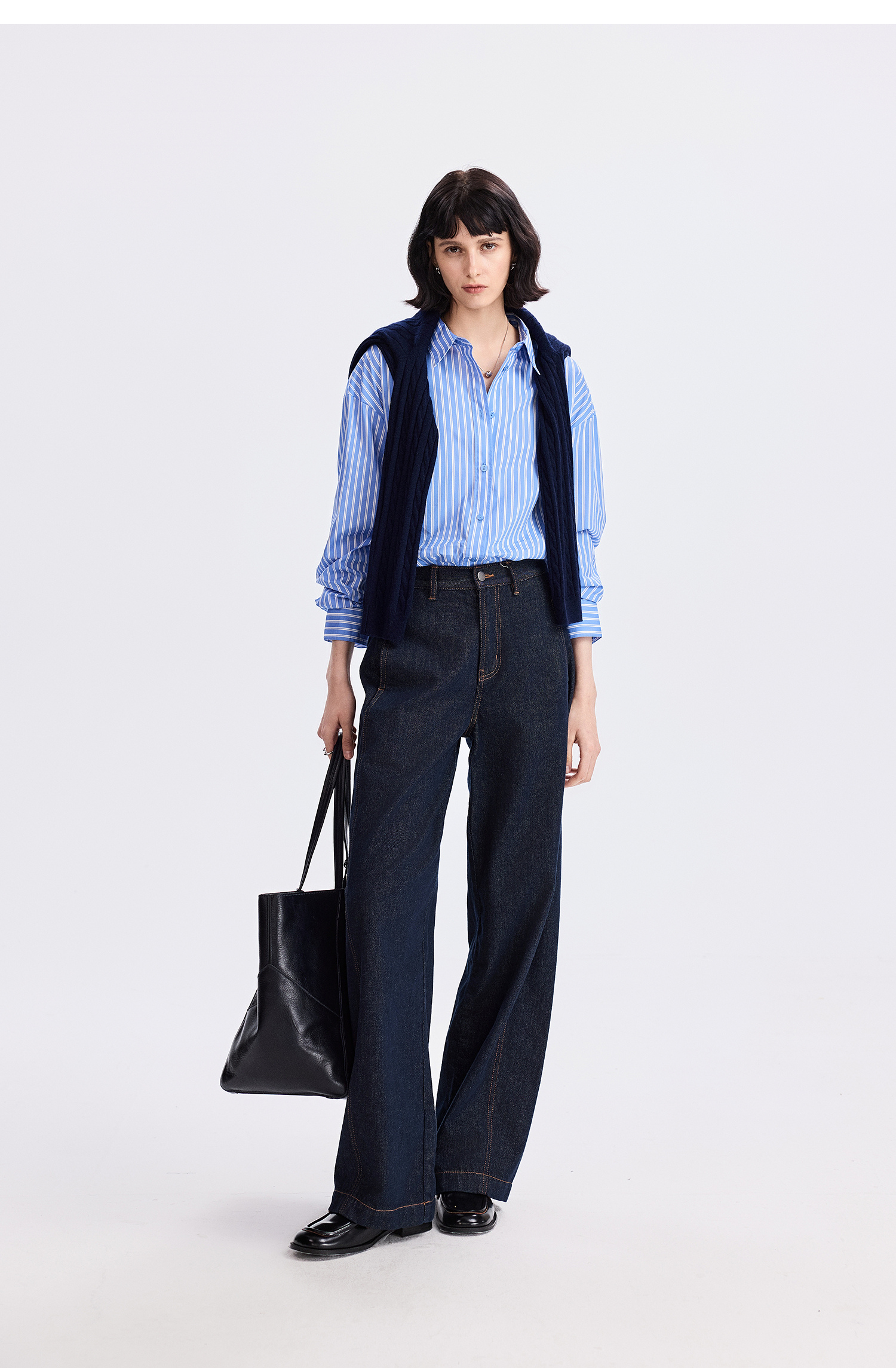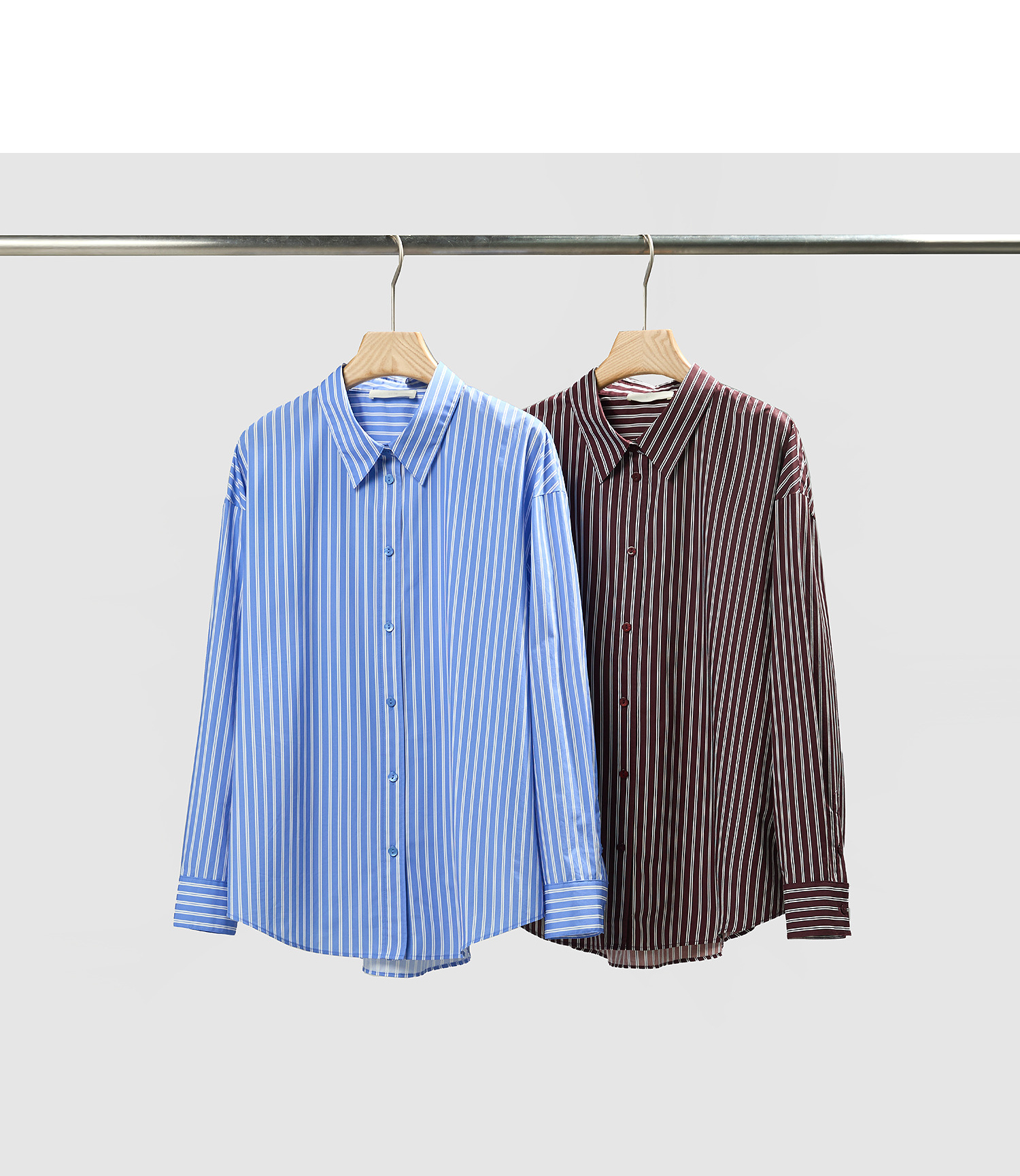 棉仓366604034-蓝色印花条纹长袖衬衫女25秋冬纯棉微宽松显瘦叠穿衬衣
