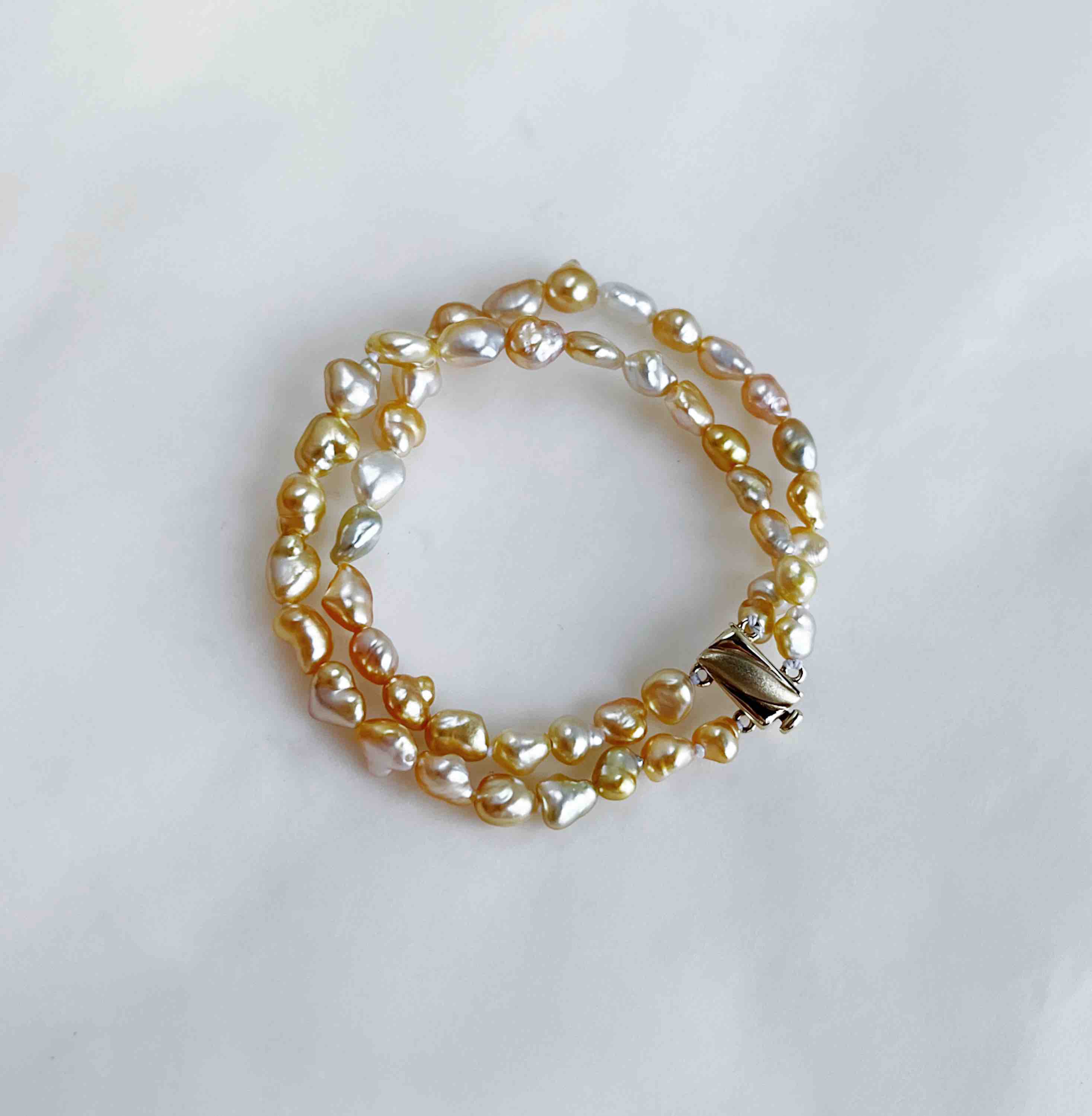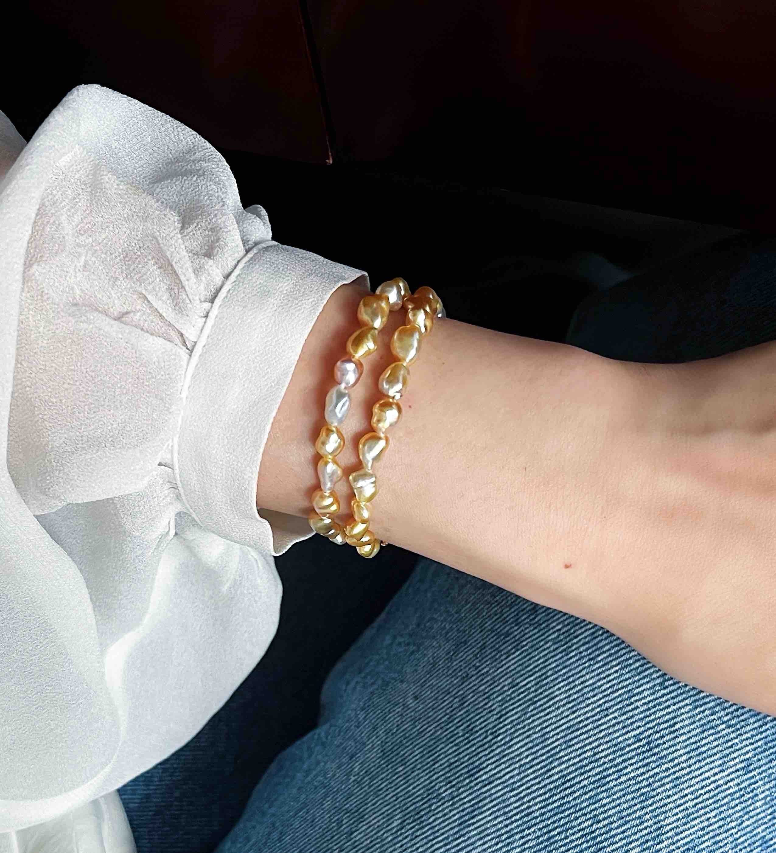 作品名称:14K镶天然金色南洋Keshi珍珠手链