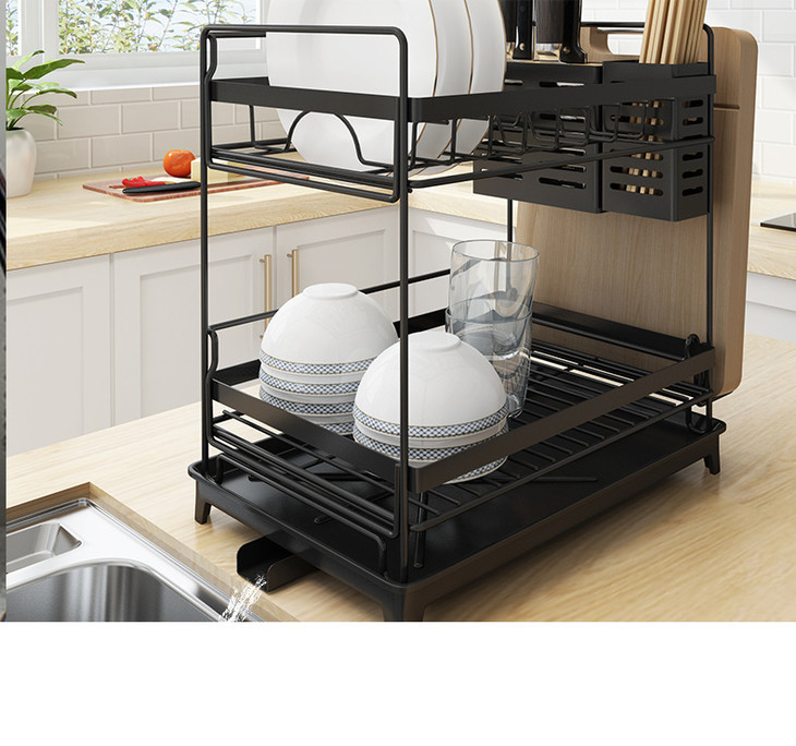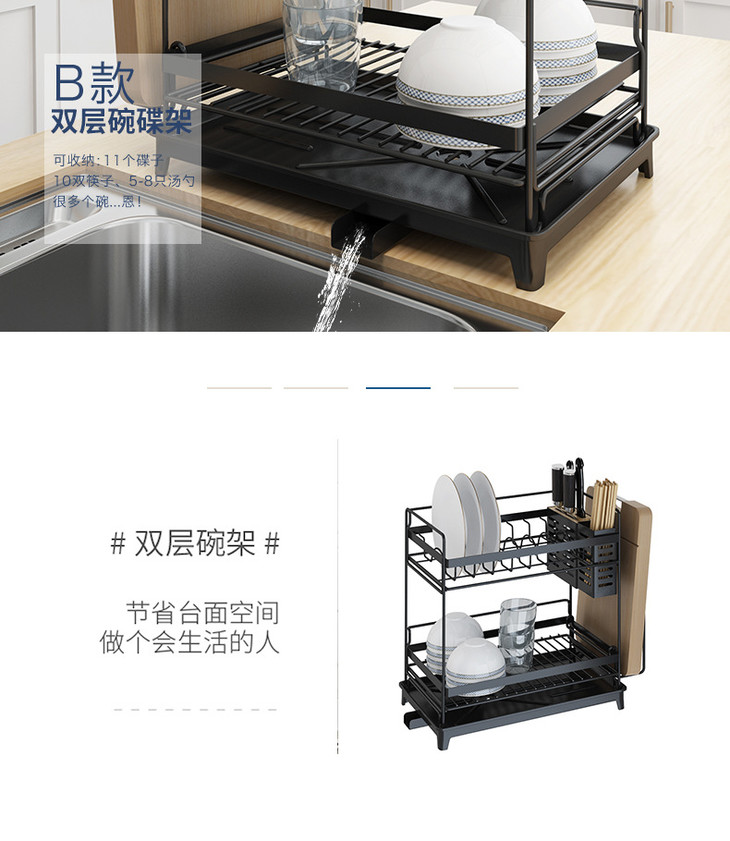 【厨房置物架】*不锈钢烤漆水槽沥水架厨房置物架盘子碗筷子收纳碗碟架
