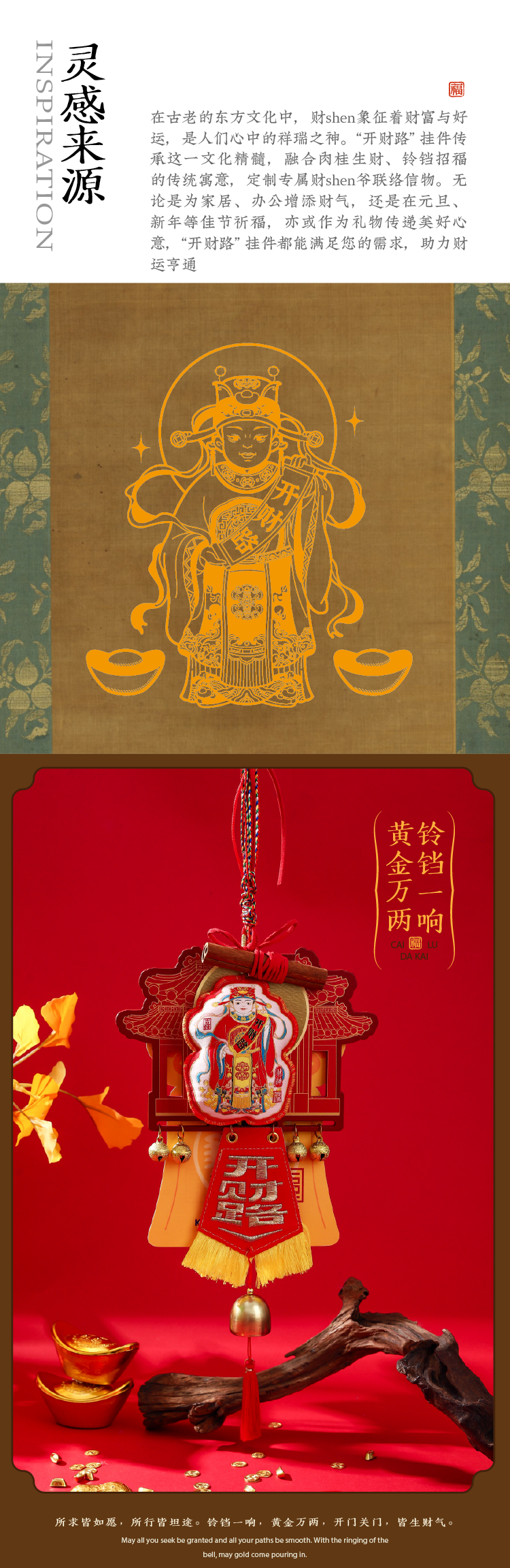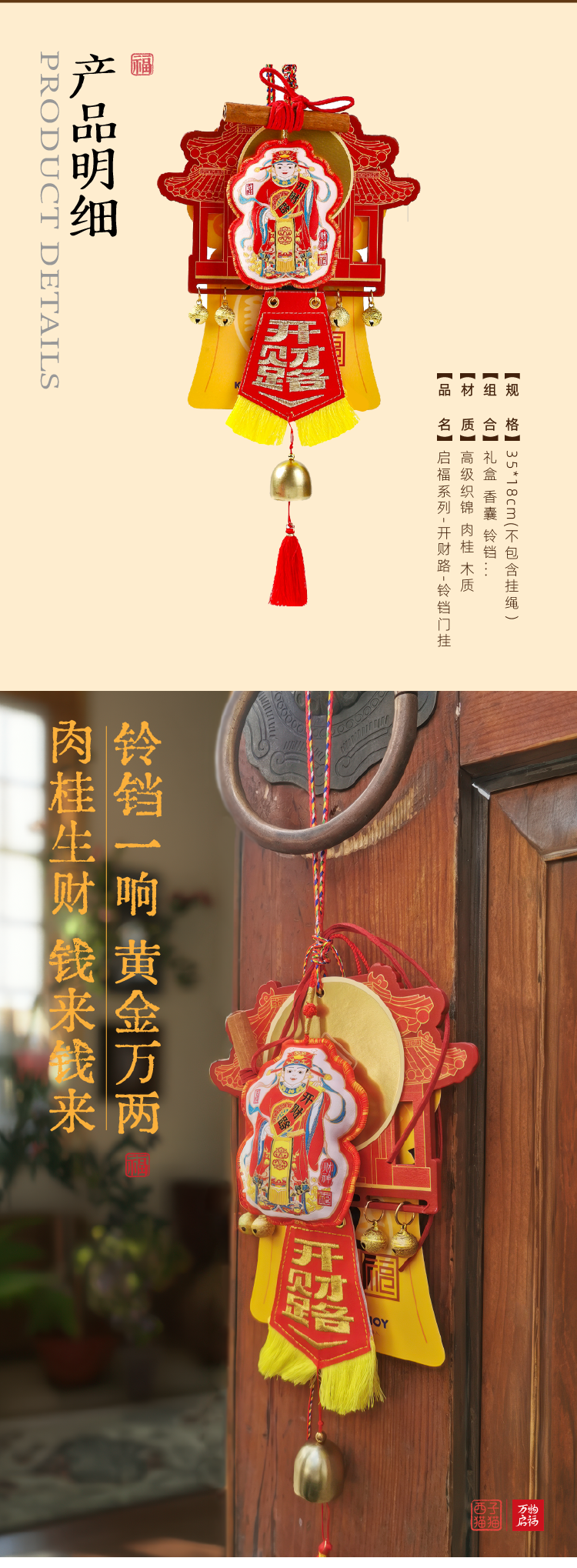 杭州西湖 万物启福系列开财路铃铛门挂 新年装饰创意香囊挂件