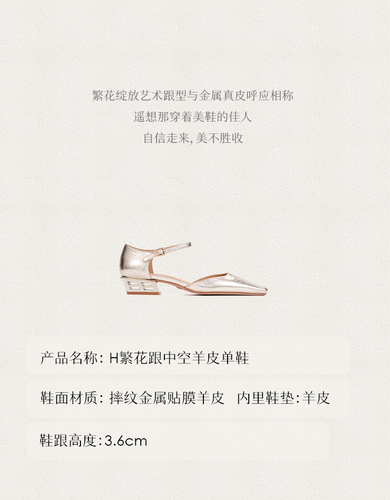 heelz设计师鞋履 | H 繁花跟中空羊皮单鞋 3.6公分