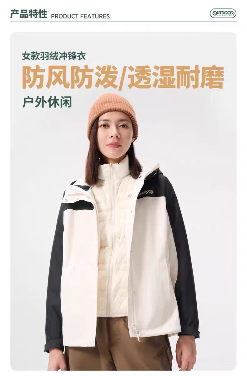 【春上新】【6折】6楼OUTDOOR休闲户外90白鸭绒二合一夹克冲锋衣吊牌价1999元折后价1199元