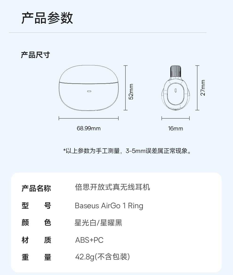 倍思 AirGo系列 1 Ring 开放式真无线耳机(耳夹)