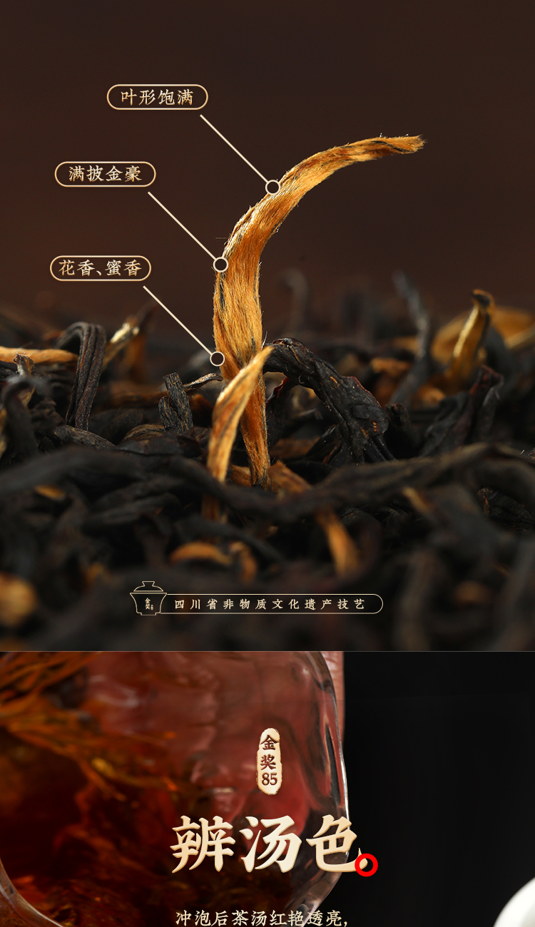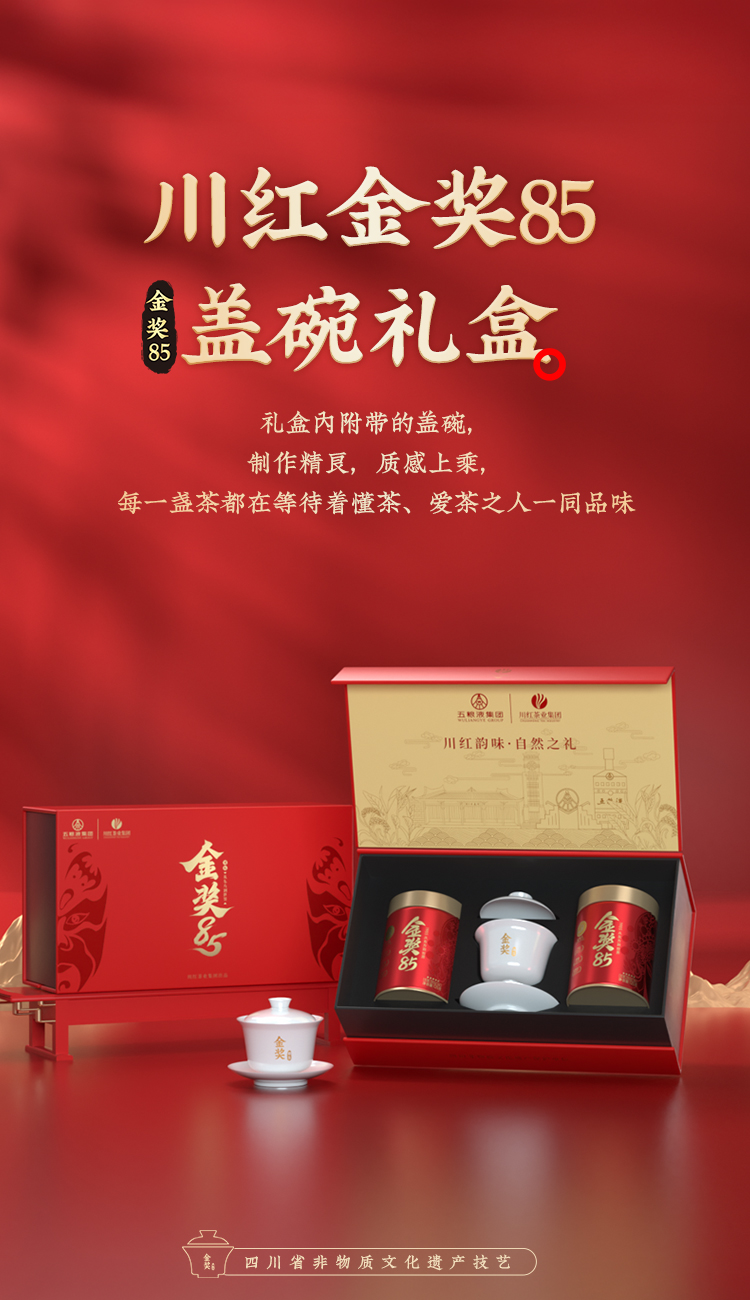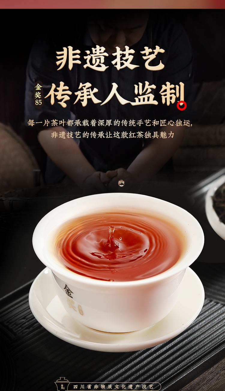川红茶叶 川红非遗特级工夫红茶金奖85礼盒 橘糖香茶叶250g礼盒内含盖碗茶具
