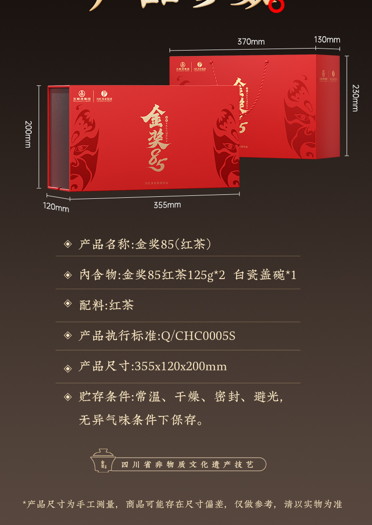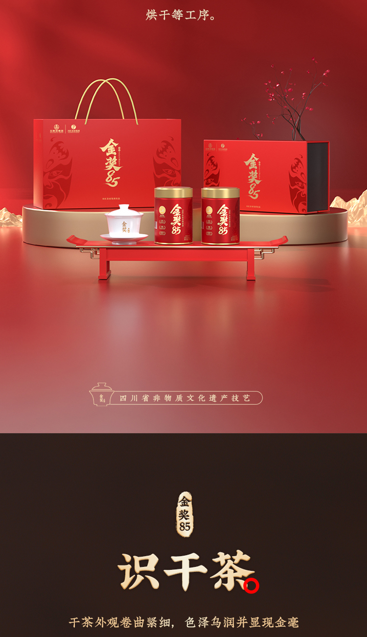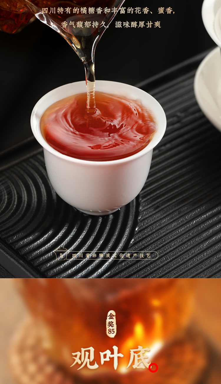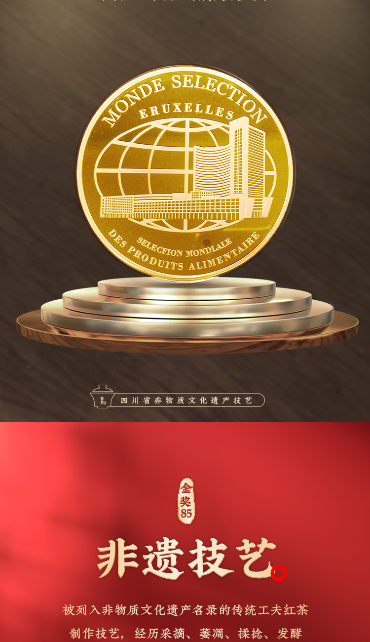 川红茶叶 川红非遗特级工夫红茶金奖85礼盒 橘糖香茶叶250g礼盒内含盖碗茶具
