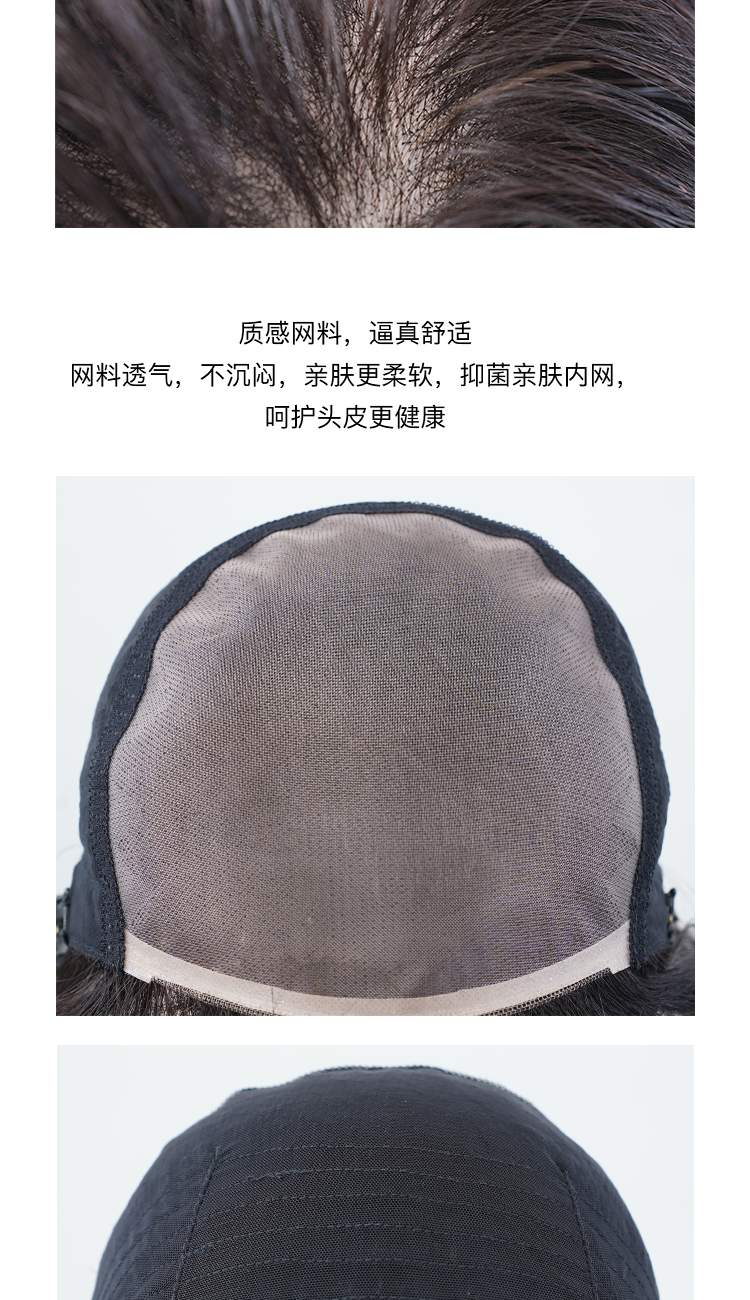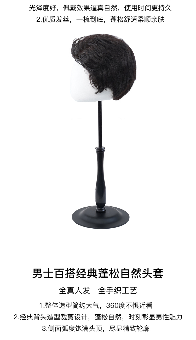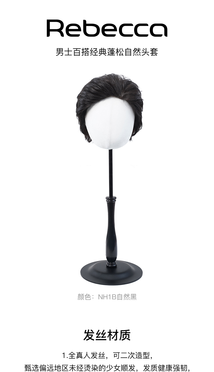 Rebecca瑞贝卡假发男士背头造型蓬松自然无痕补发片全真人发全手织发套