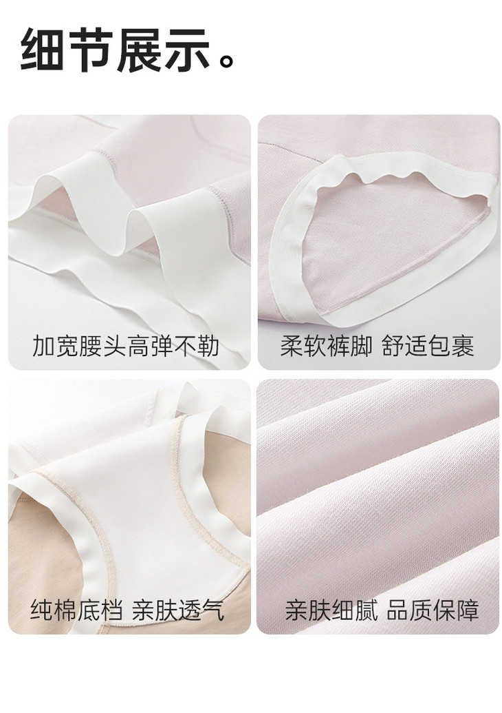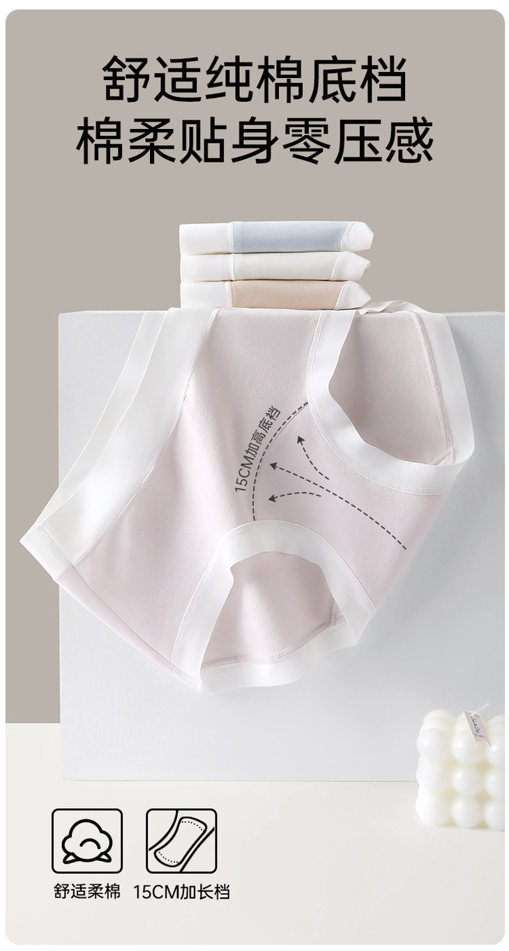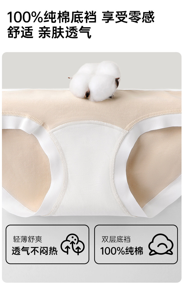 N2-【4条装 100纯棉底裆】透气薄款舒适高弹不夹裆女士内裤】风轻日柔 /舒柔奶芙 /奶氧小裤
