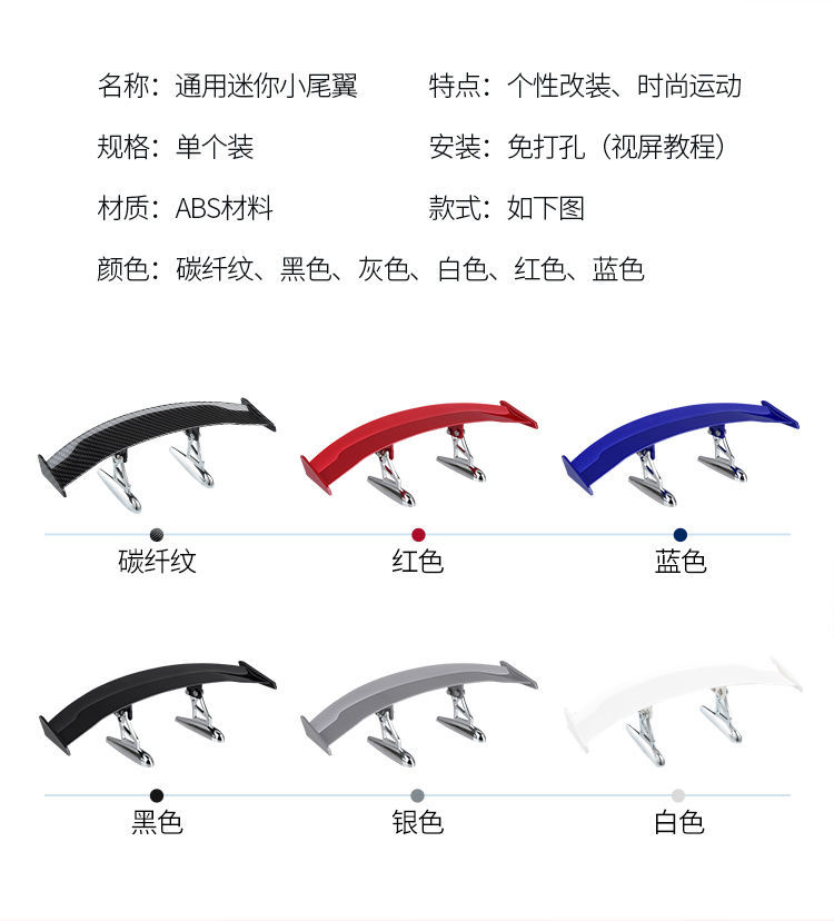 汽车尾翼迷你通用改装碳纤小尾翼免打孔汽车ABS个性装饰运动尾翼