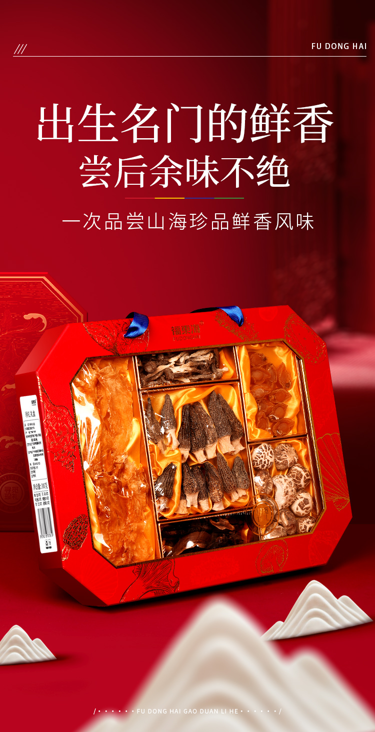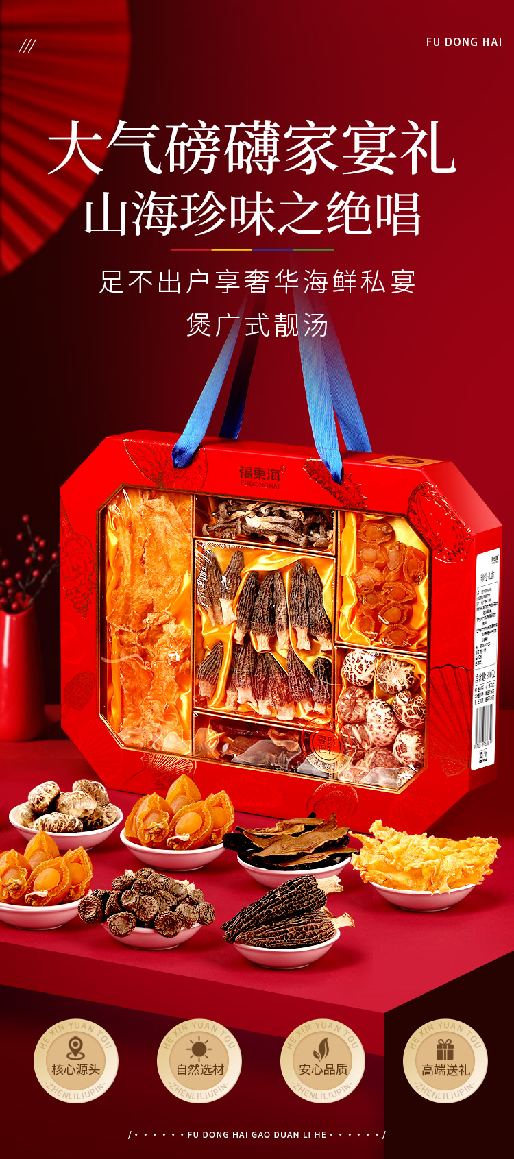 福东海 六拼珍礼礼盒 300克/盒 鲍鱼80克+鳕鱼胶60克+花菇65克+羊肚菌30克+灵芝30克+鹿茸菇35克 花菇羊肚菌鹿茸菇山珍海味干货特产礼盒 菌汤包 山珍海味干货礼盒