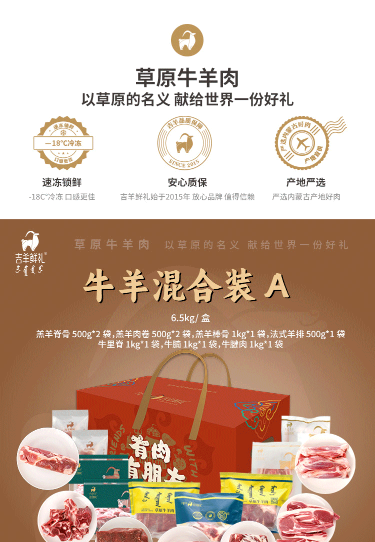 【牛羊混合装A】6.5kg 吉羊鲜礼品牌牛羊肉礼盒内蒙古生鲜特产
