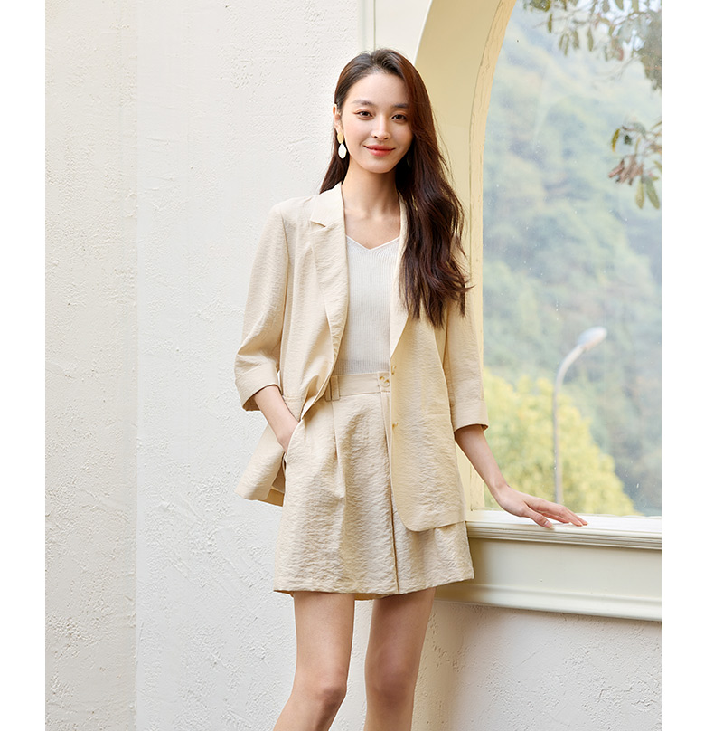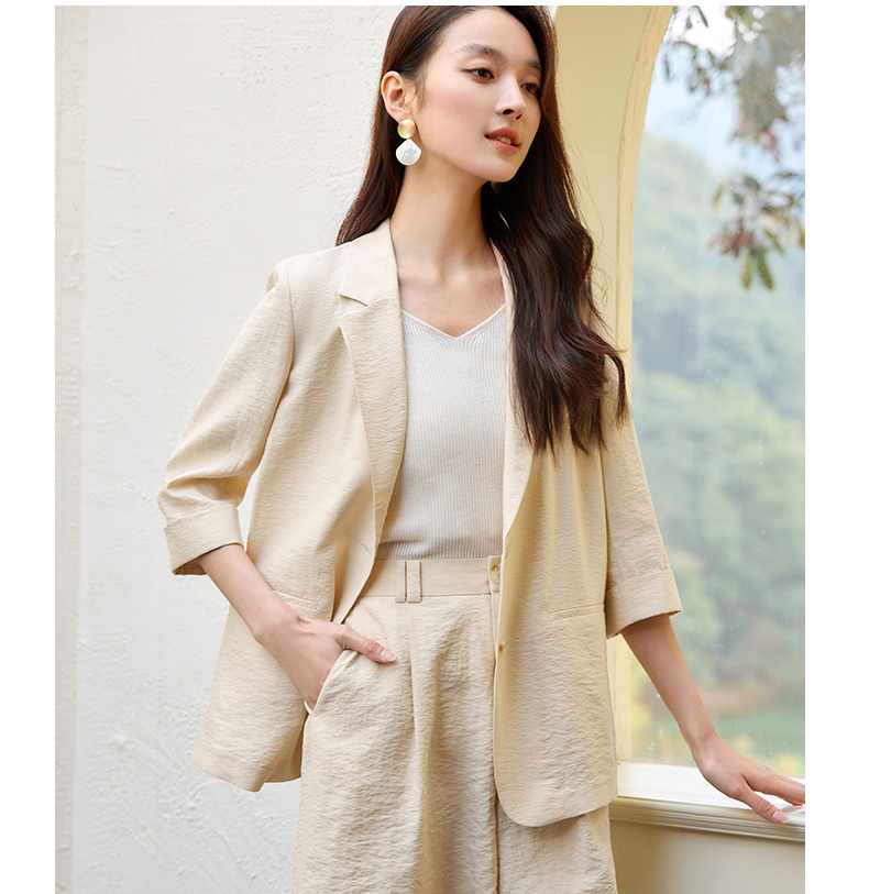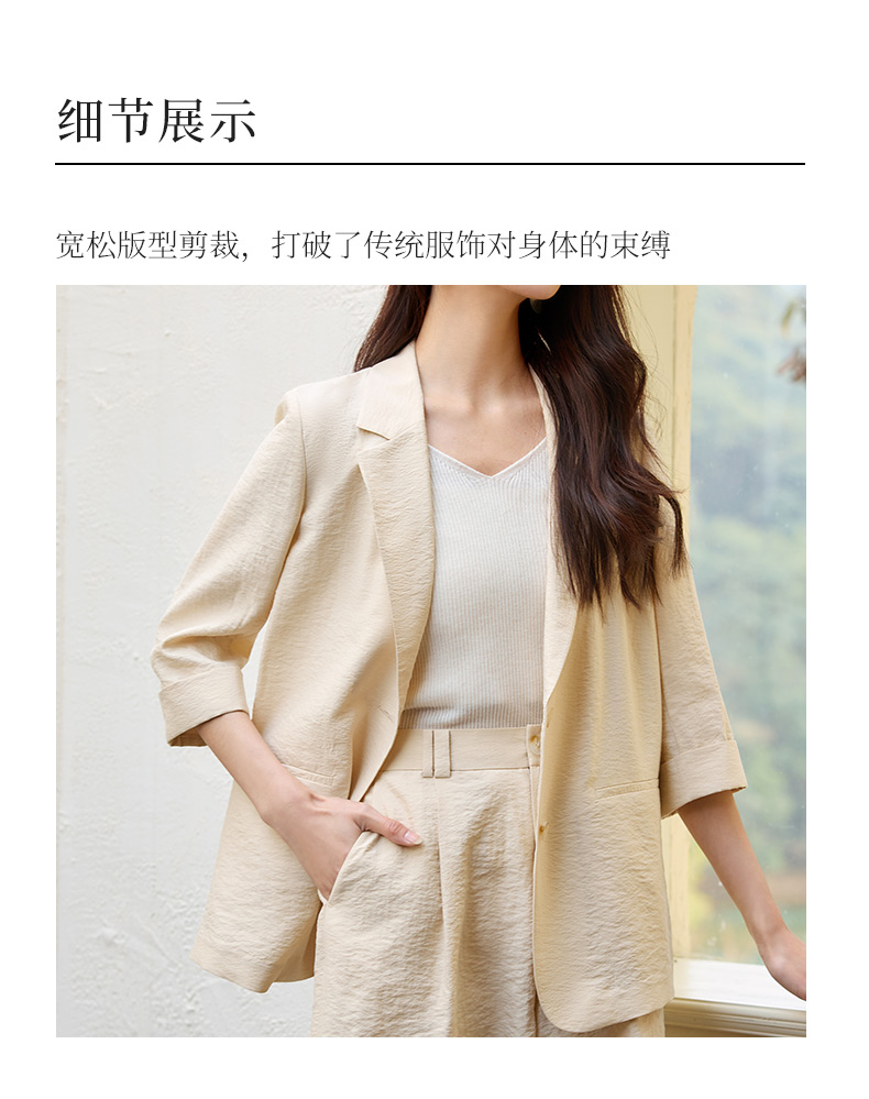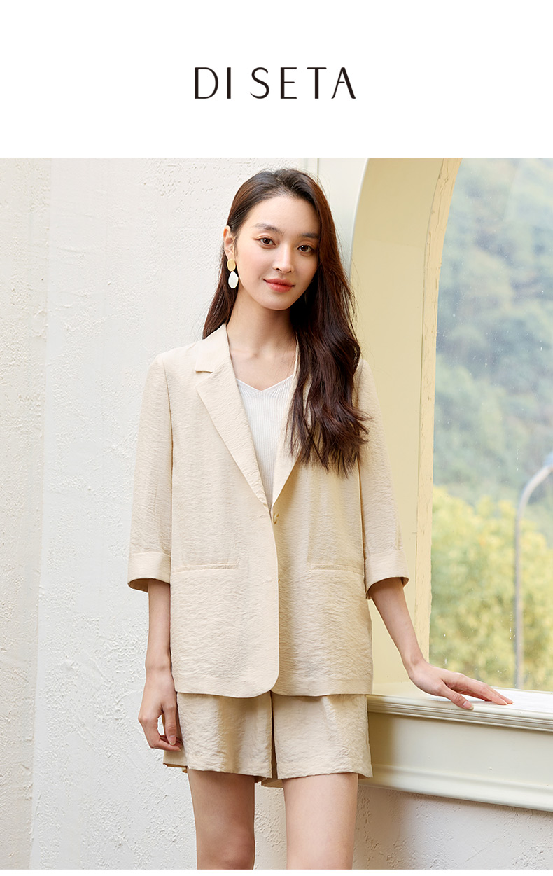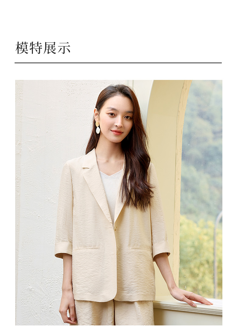 玳莎砂洗绢丝西装女2025年春季新款桑蚕丝高级感正肩七分袖外套 FB37301
