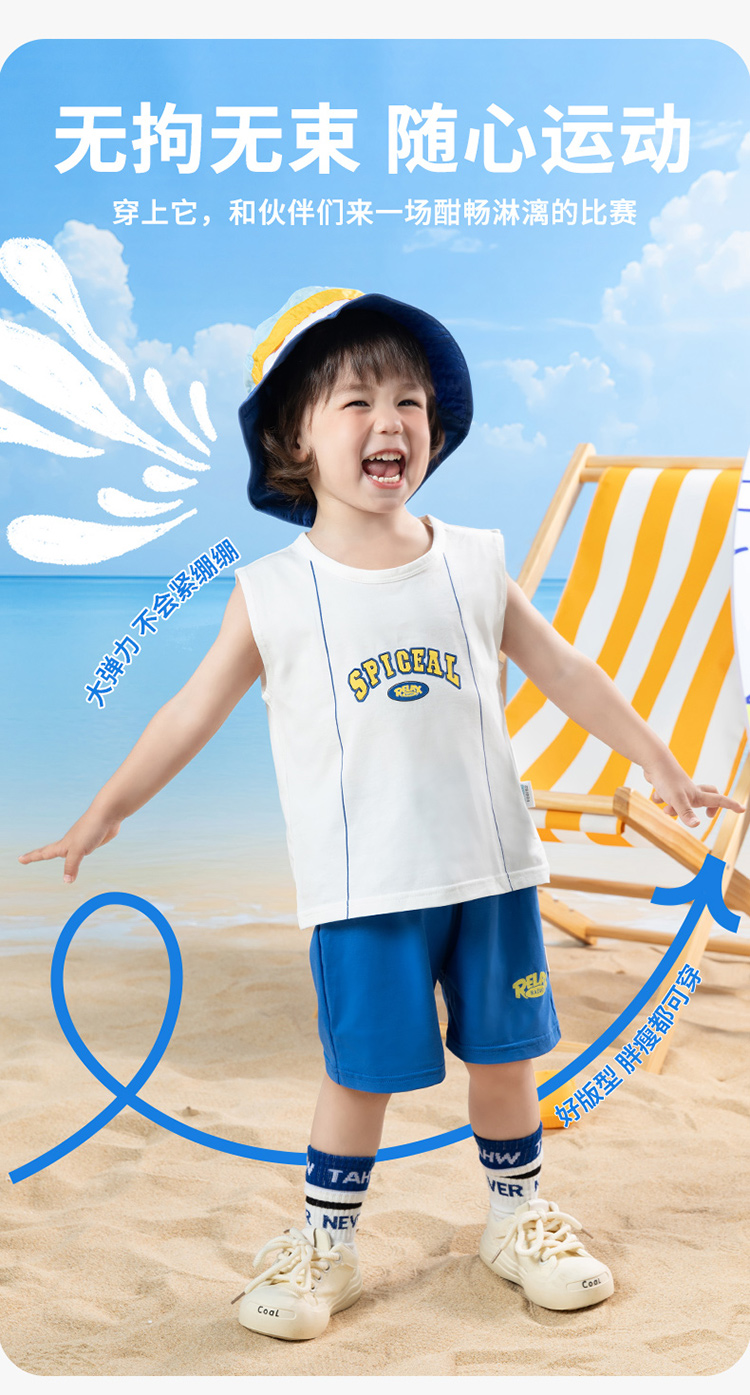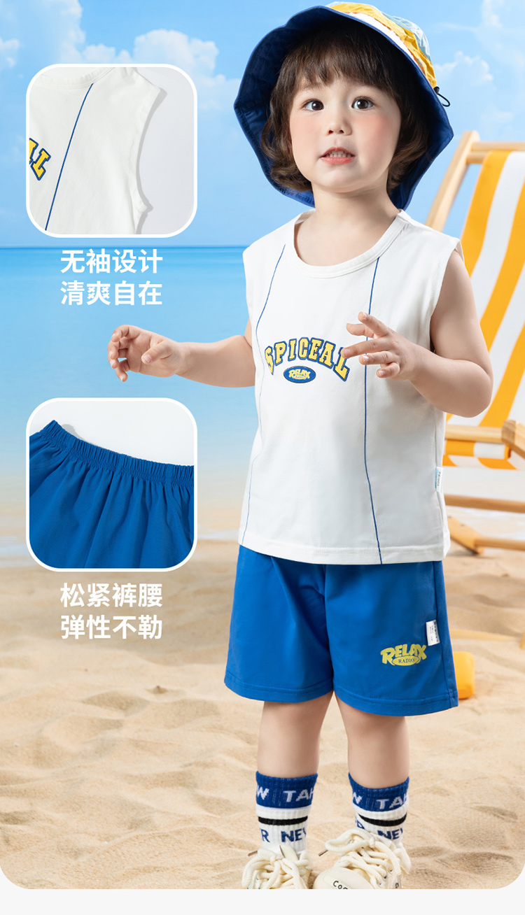 贝贝怡25夏季新款男童凉感背心套装无袖运动休闲套装透气篮球服足球服ZB2ET008