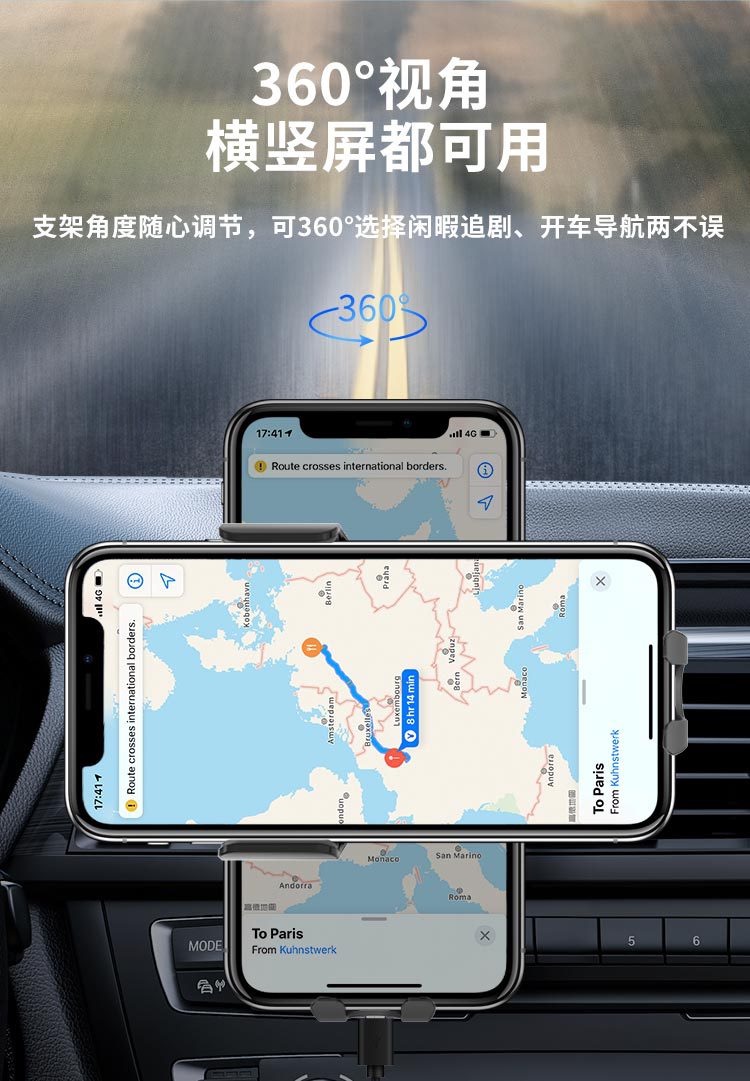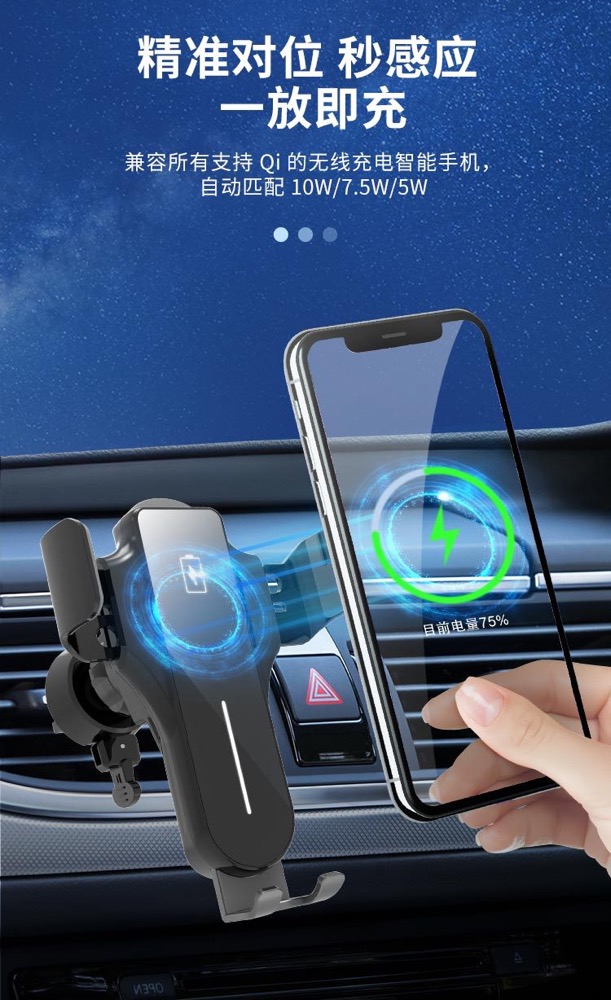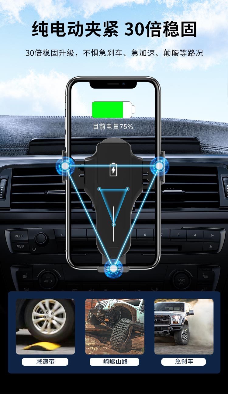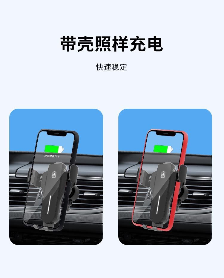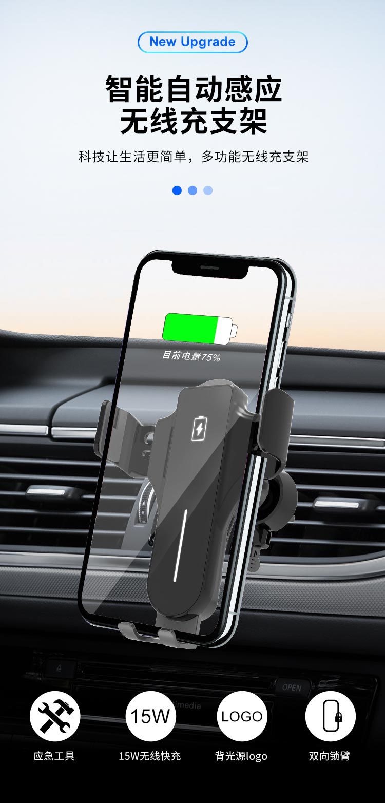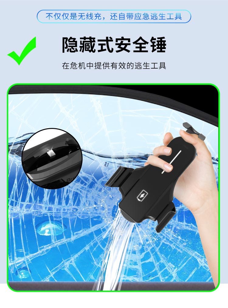 车载无线充支架自动感应开合无线充电器手机车载支架出风口支架安全逃生器