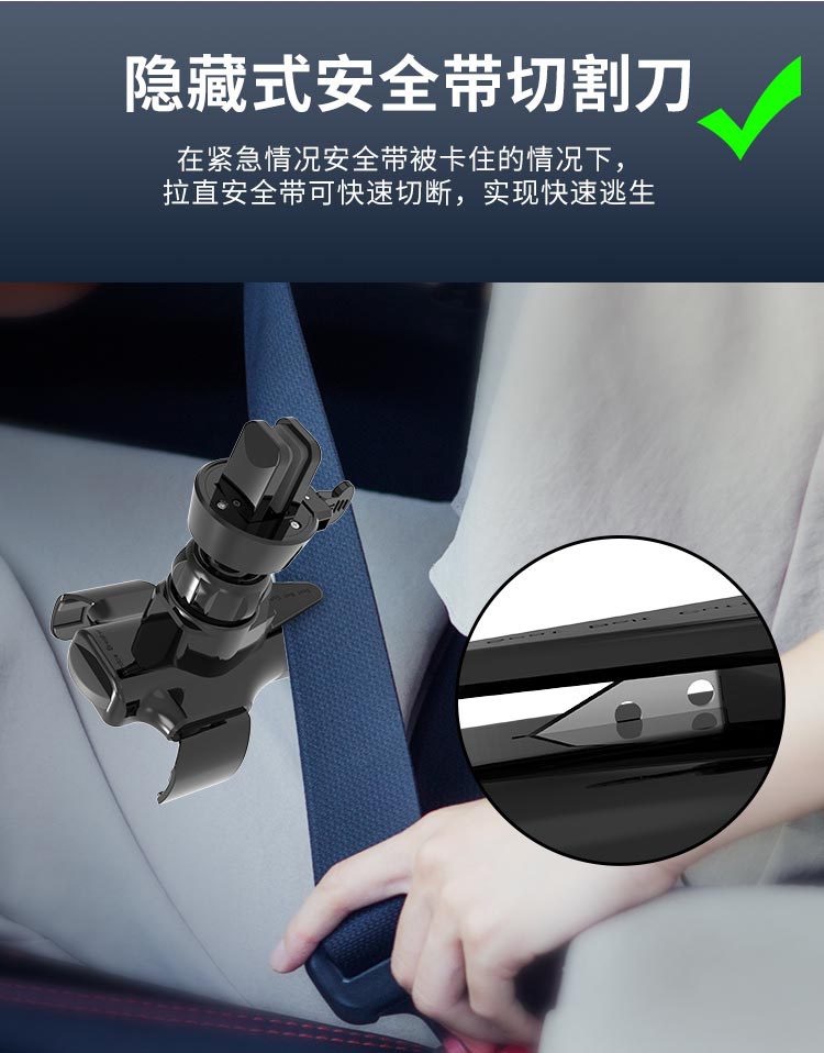 车载手机安全支架 多功能三合一汽车出风口重力支架安全逃生带破窗锤割刀