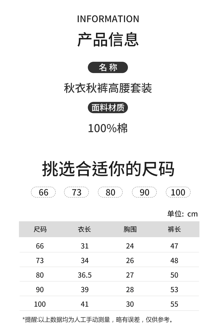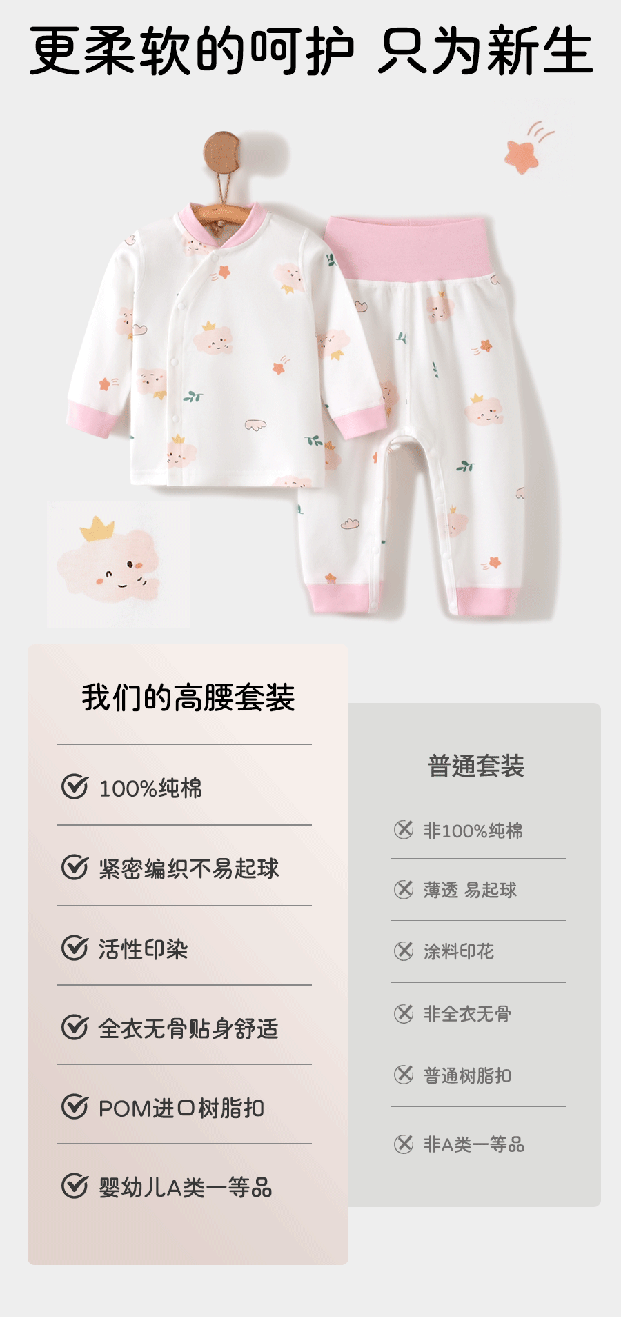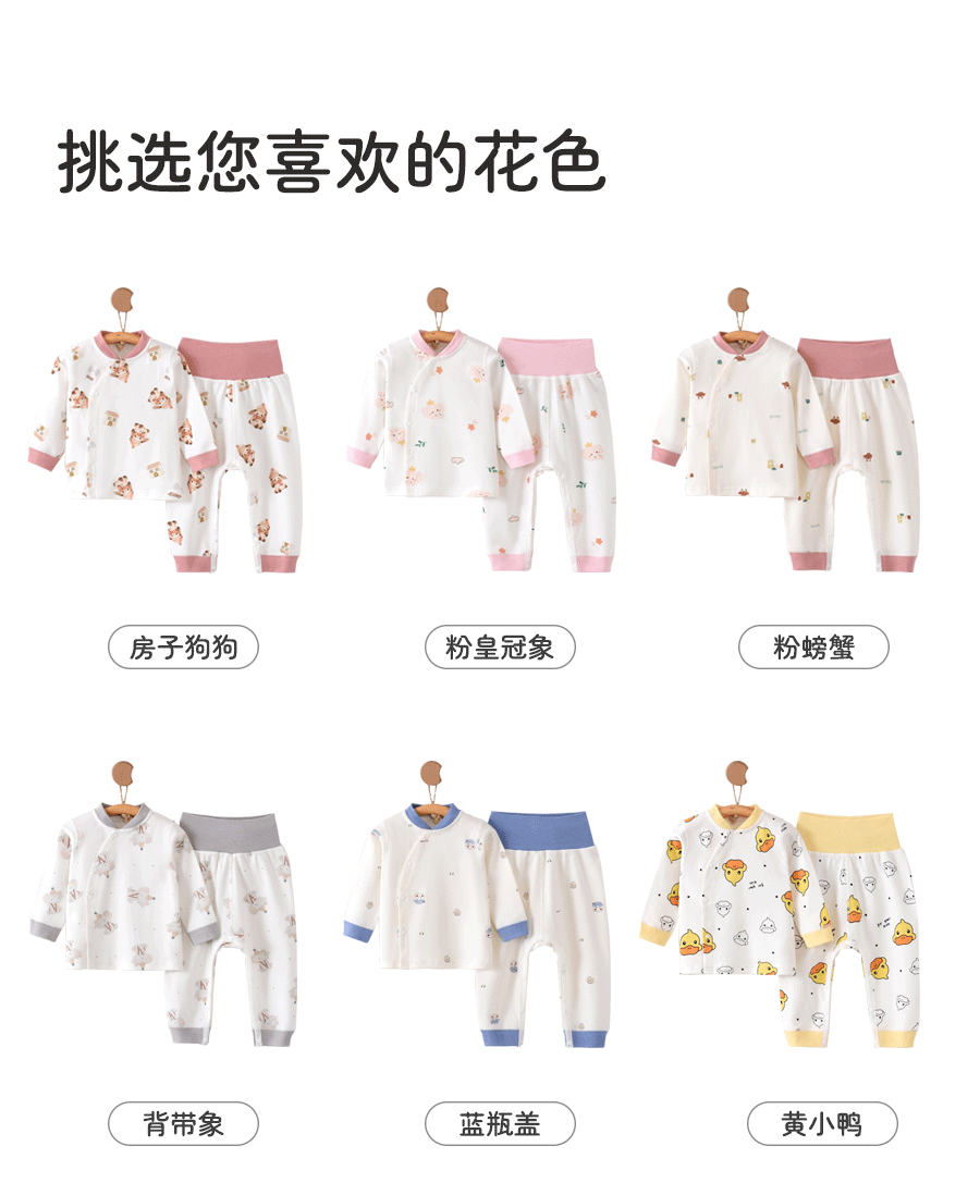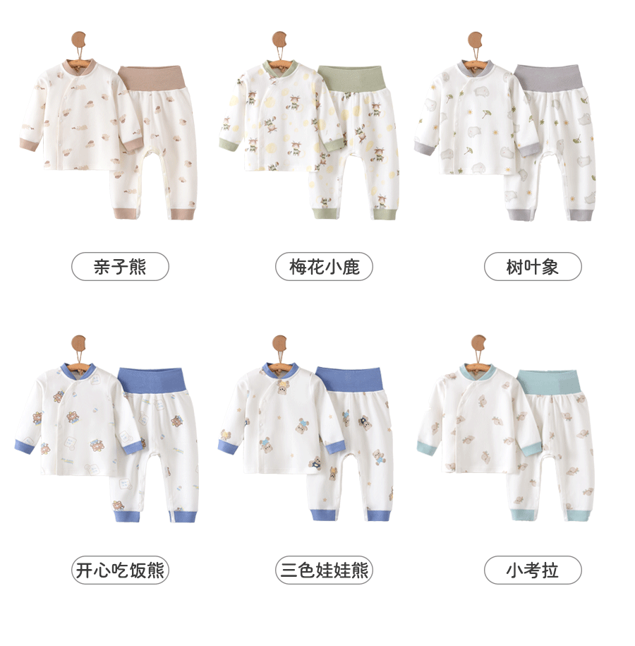 【婴儿秋衣秋裤裆部开扣高腰套装】纯棉a类0~2岁宝宝冬季打底儿童家居服套装